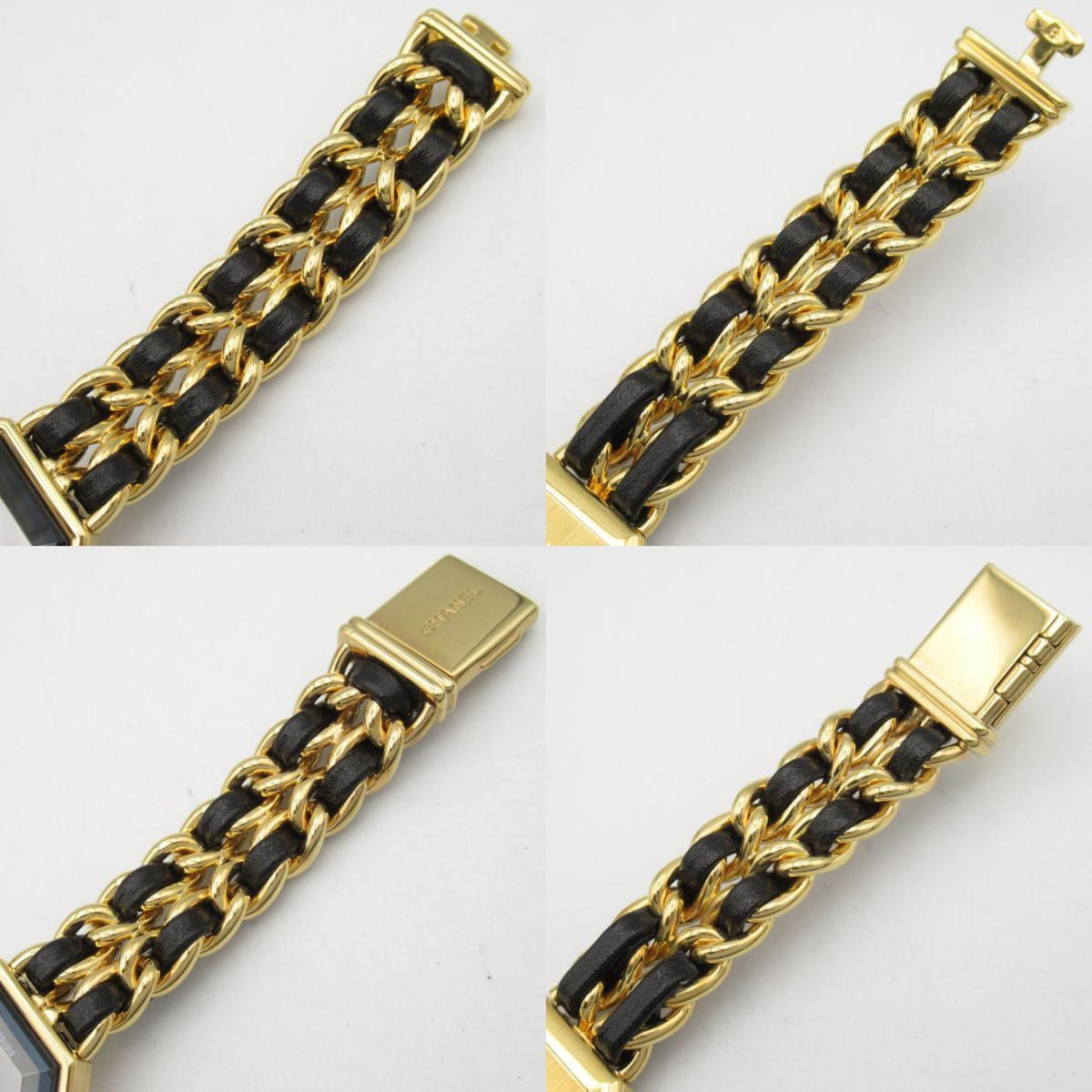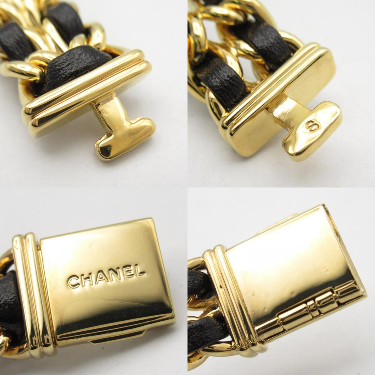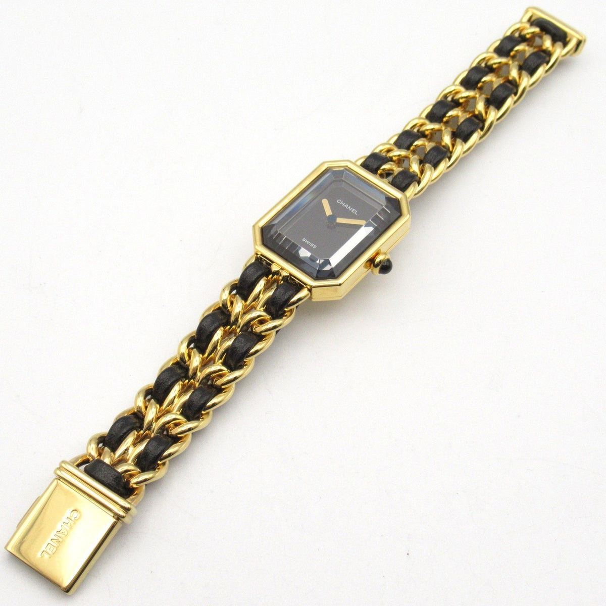 Gebrauchte CHANEL Premiere S Uhr GP (vergoldet) Leder Damen Schwarz H0001