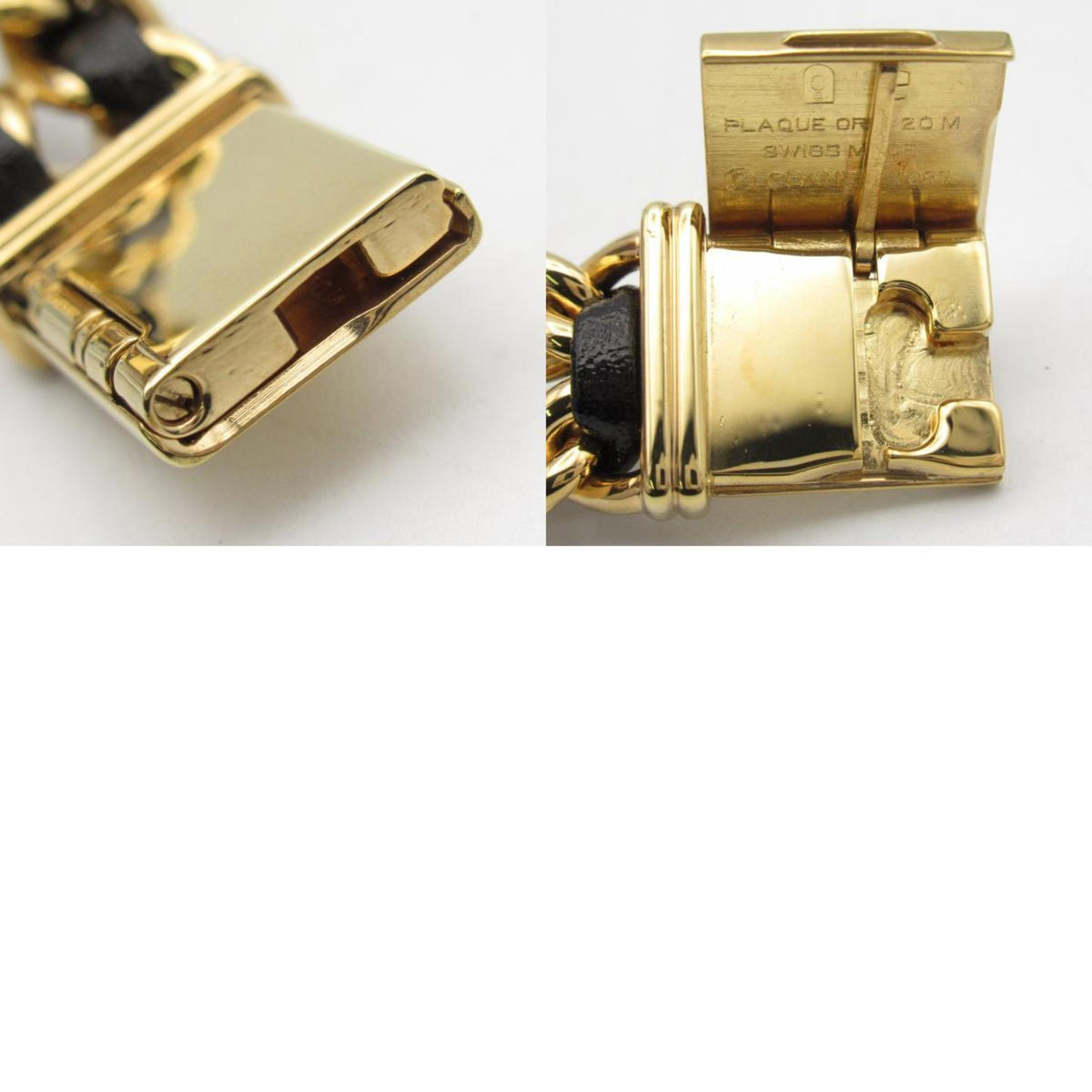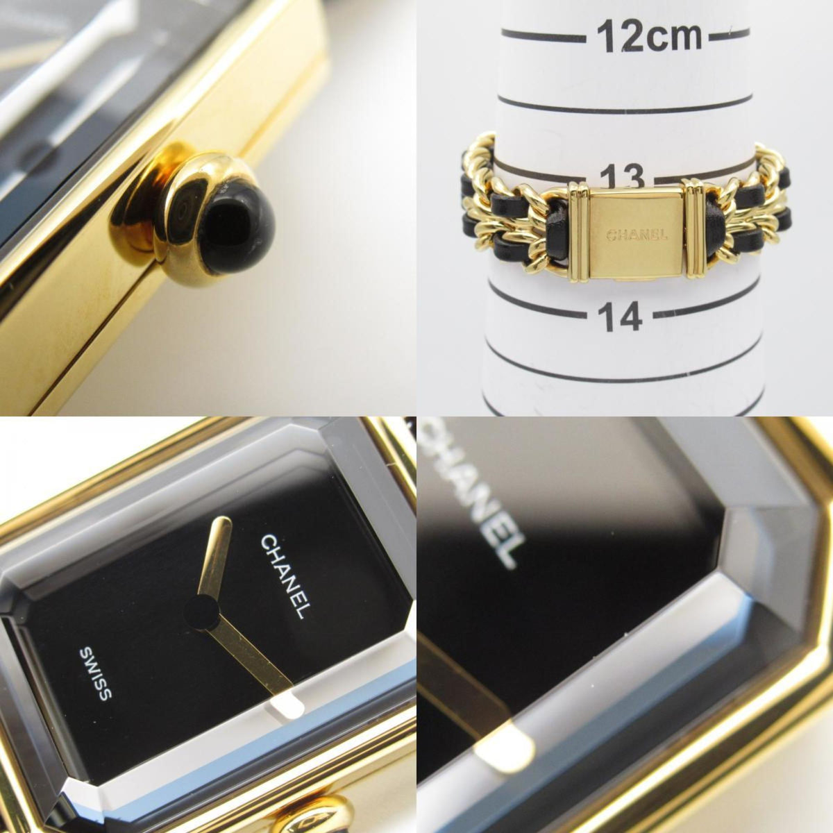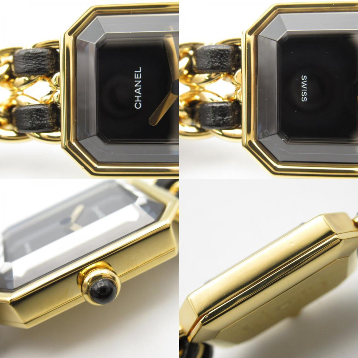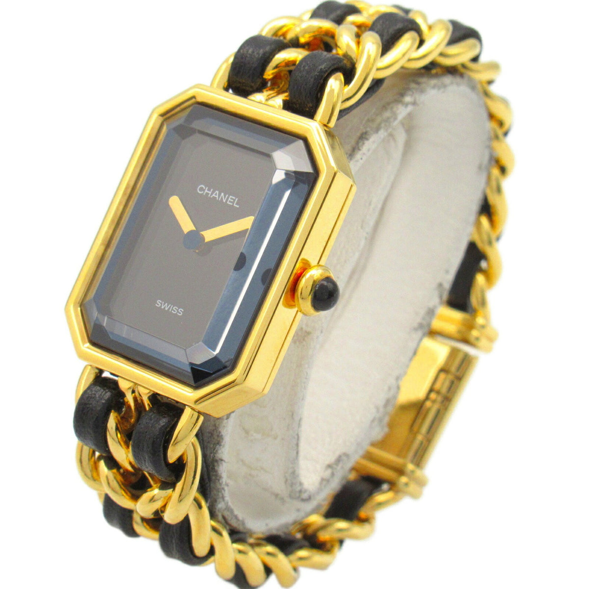 Gebrauchte CHANEL Premiere S Uhr GP (vergoldet) Leder Damen Schwarz H0001