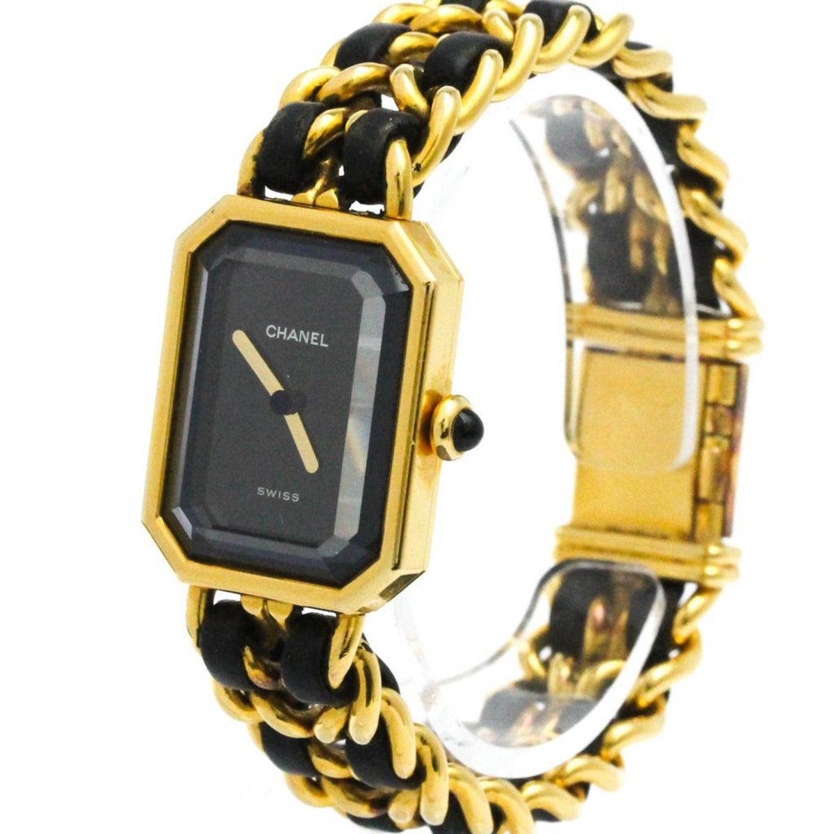 Gebrauchte CHANEL Premiere Größe M vergoldete Quarz-Damenuhr H0001