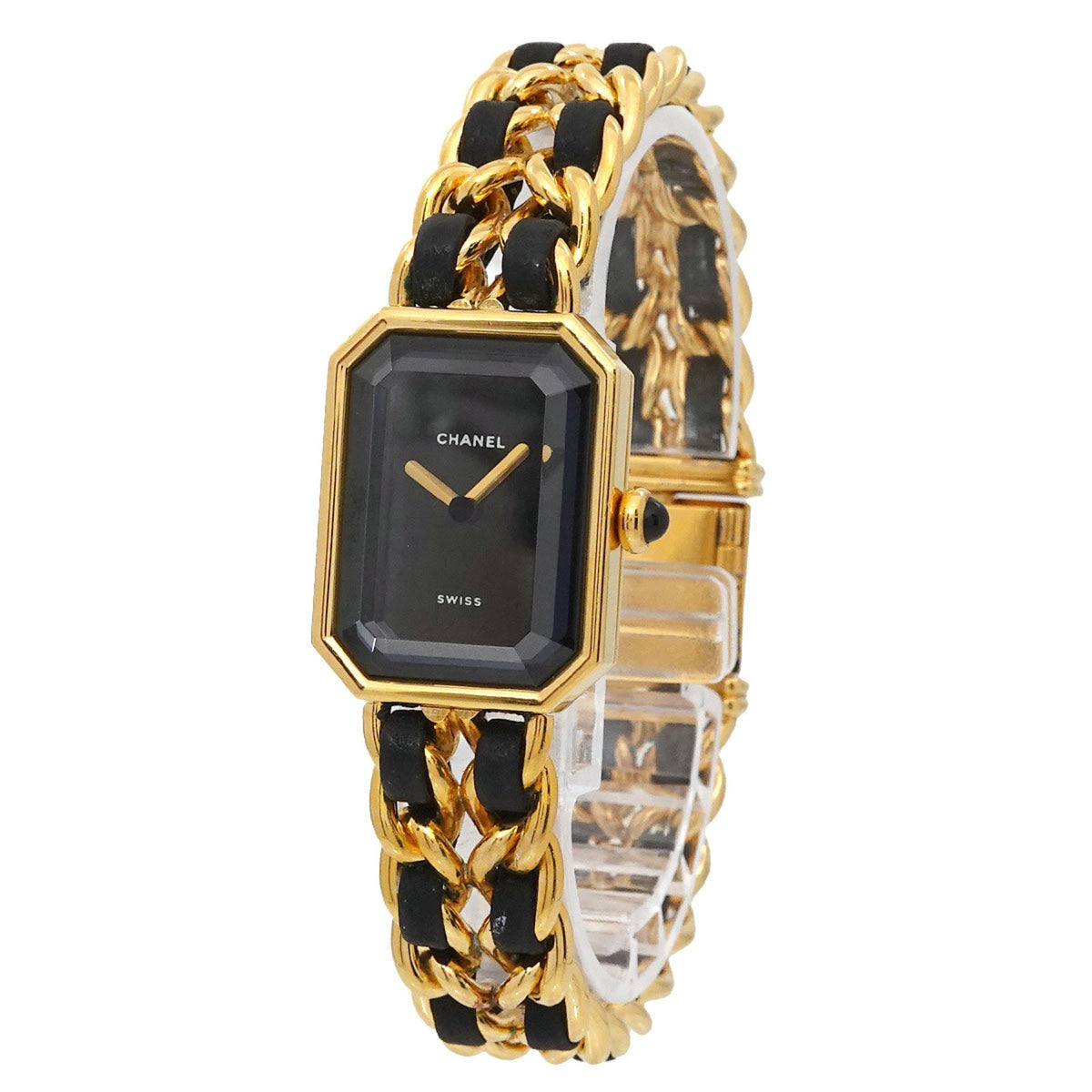 Gebrauchte CHANEL Premiere XL Größe H0001 Damenuhr Schwarz Gold Quarz
