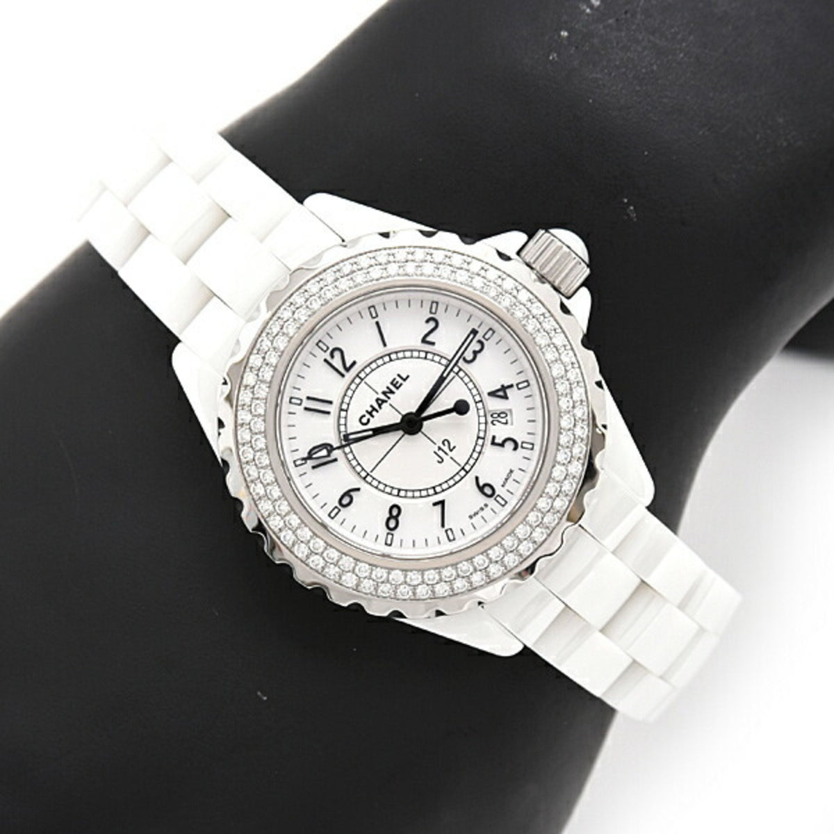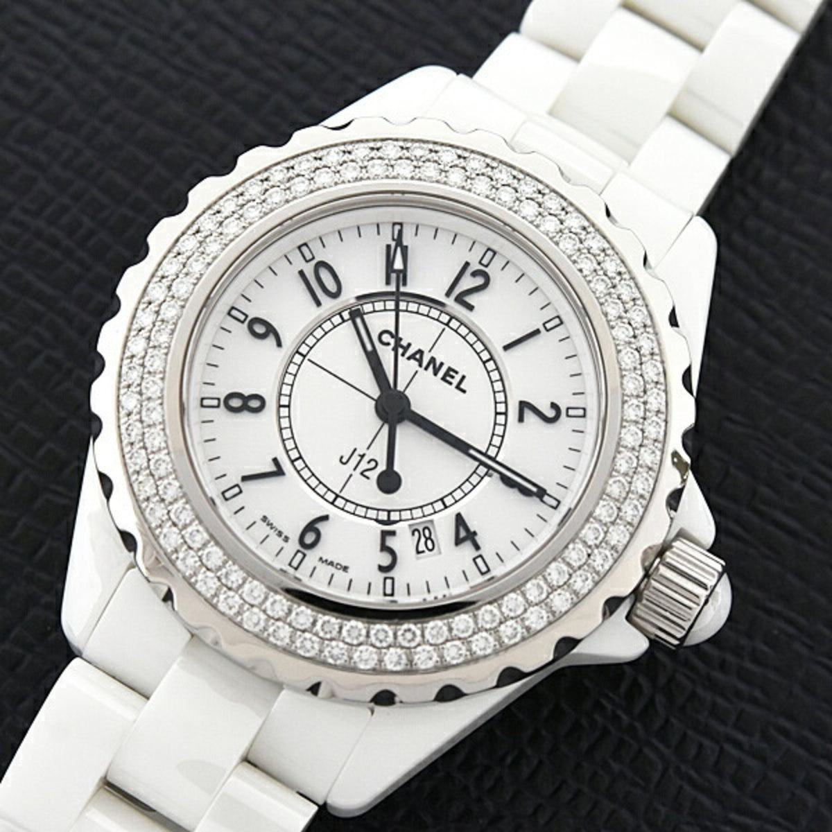 Gebrauchte Chanel Damenuhr, J12, Datum, 33 mm, Doppeldiamantlünette, batteriebetrieben, weißes Zifferblatt, CE, CHANEL, H0967
