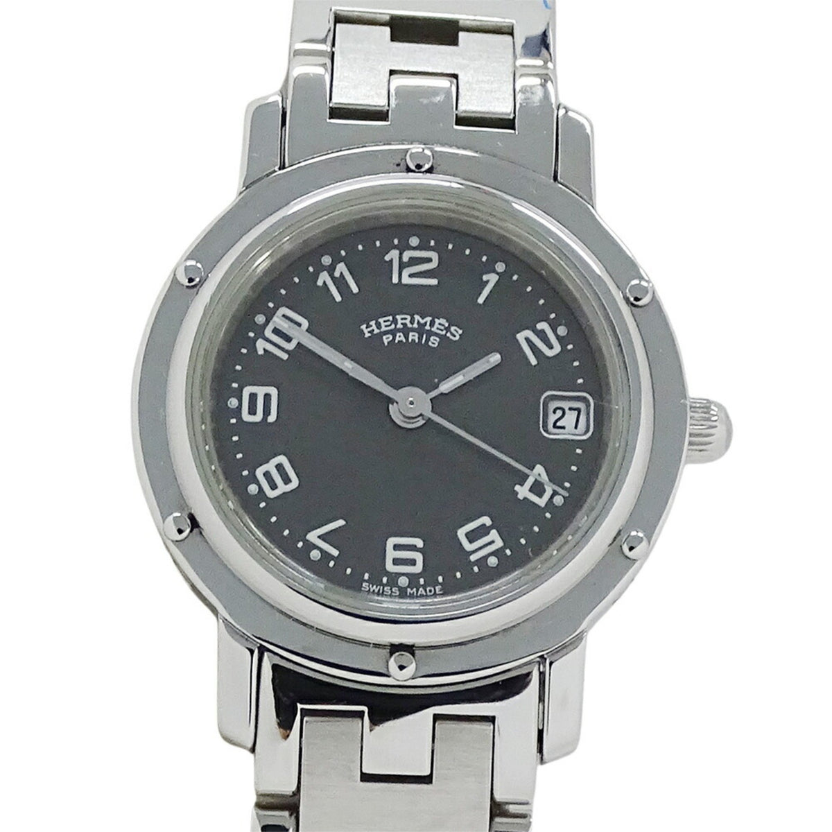 Pre-Owned Herm?s Clipper Date Quartz Stainless Steel Watch CL4.210, Silver Gray, Polished