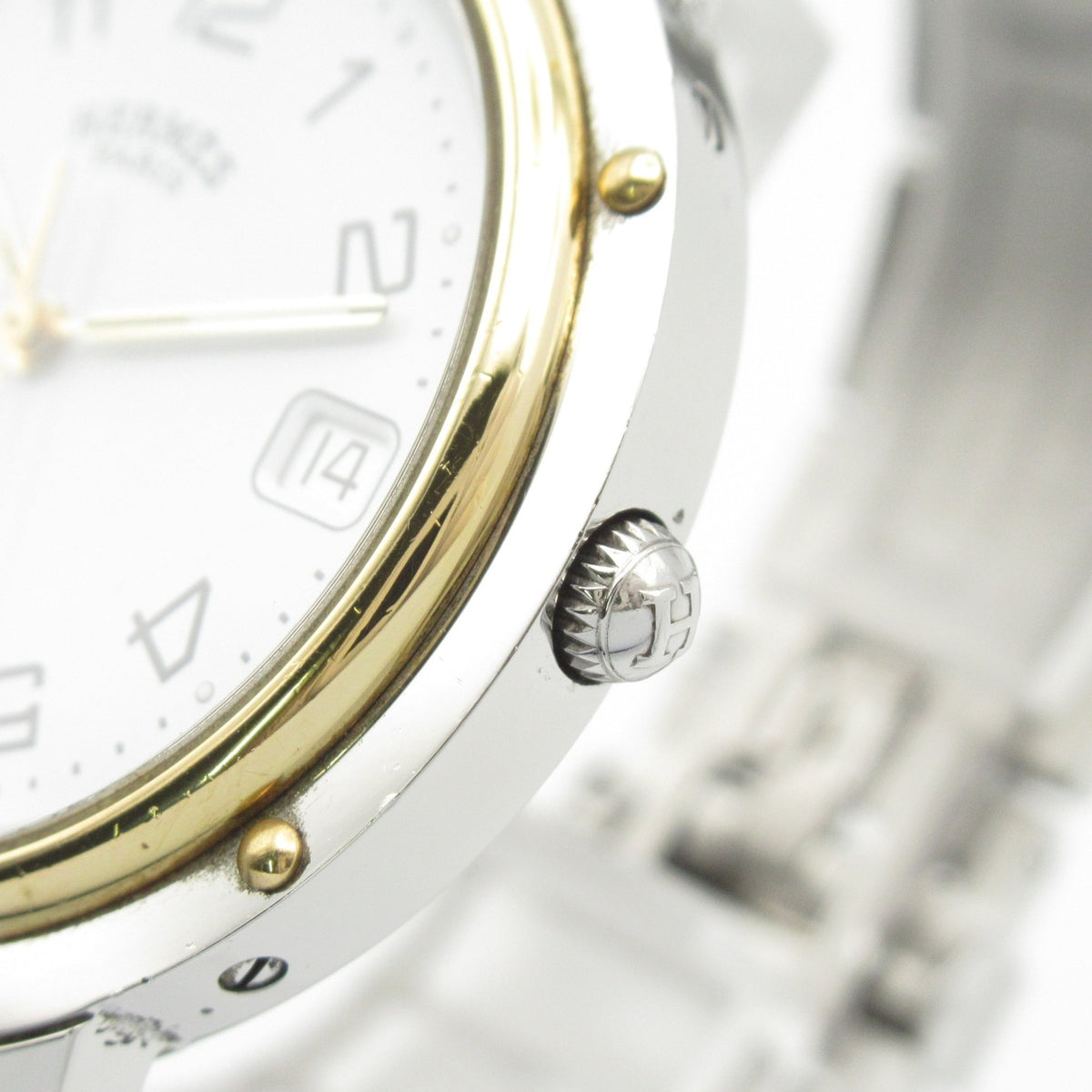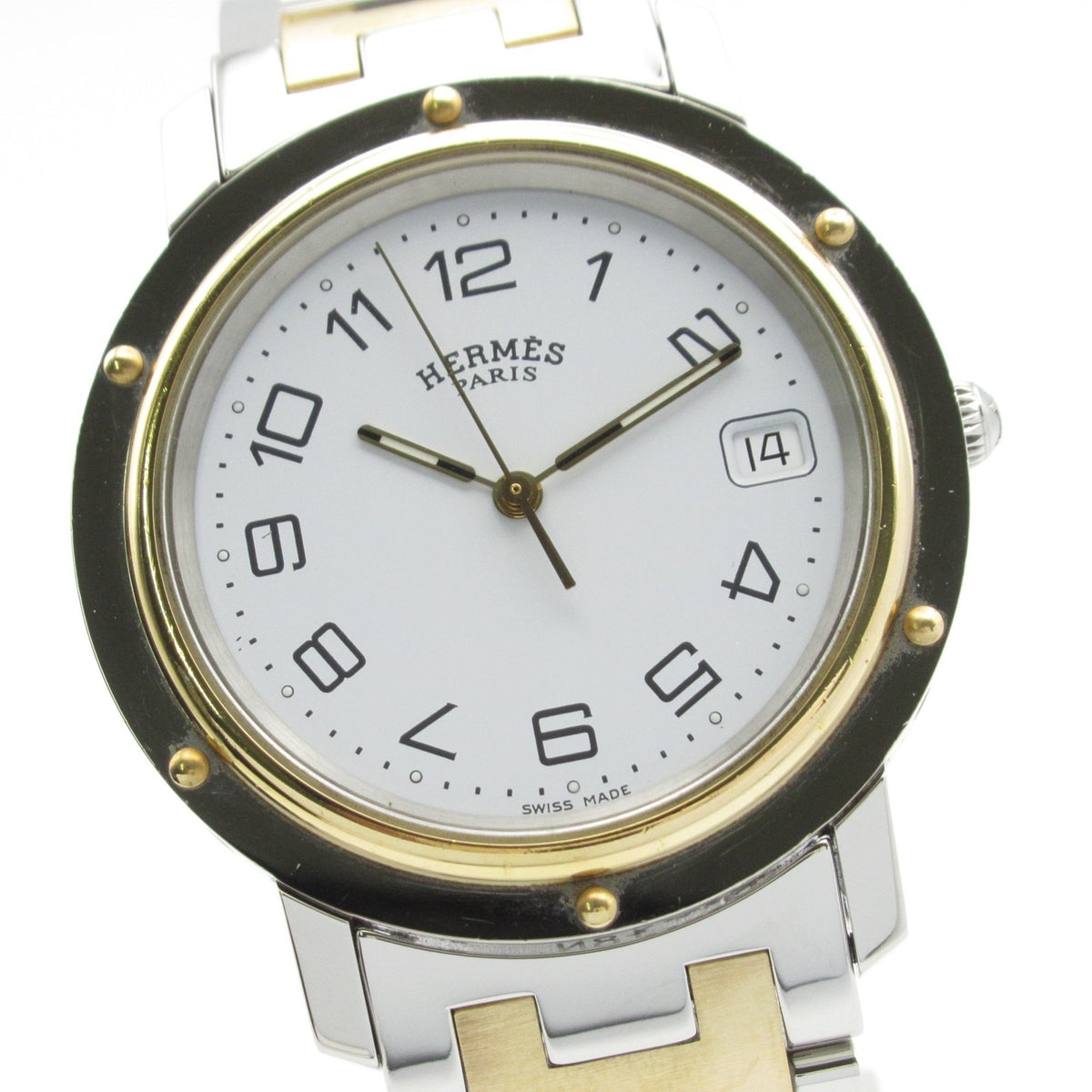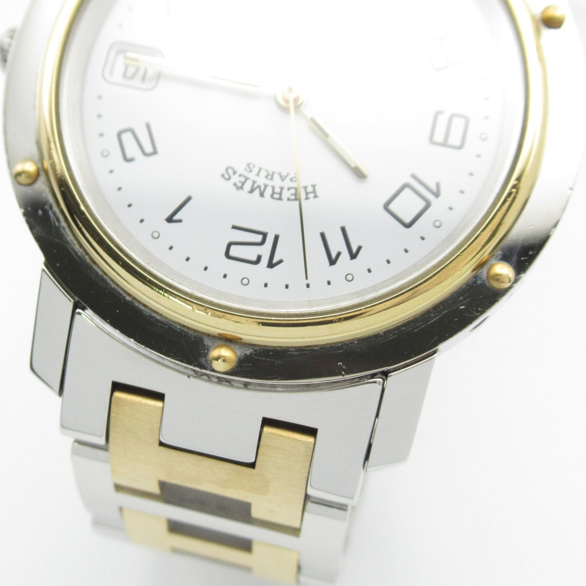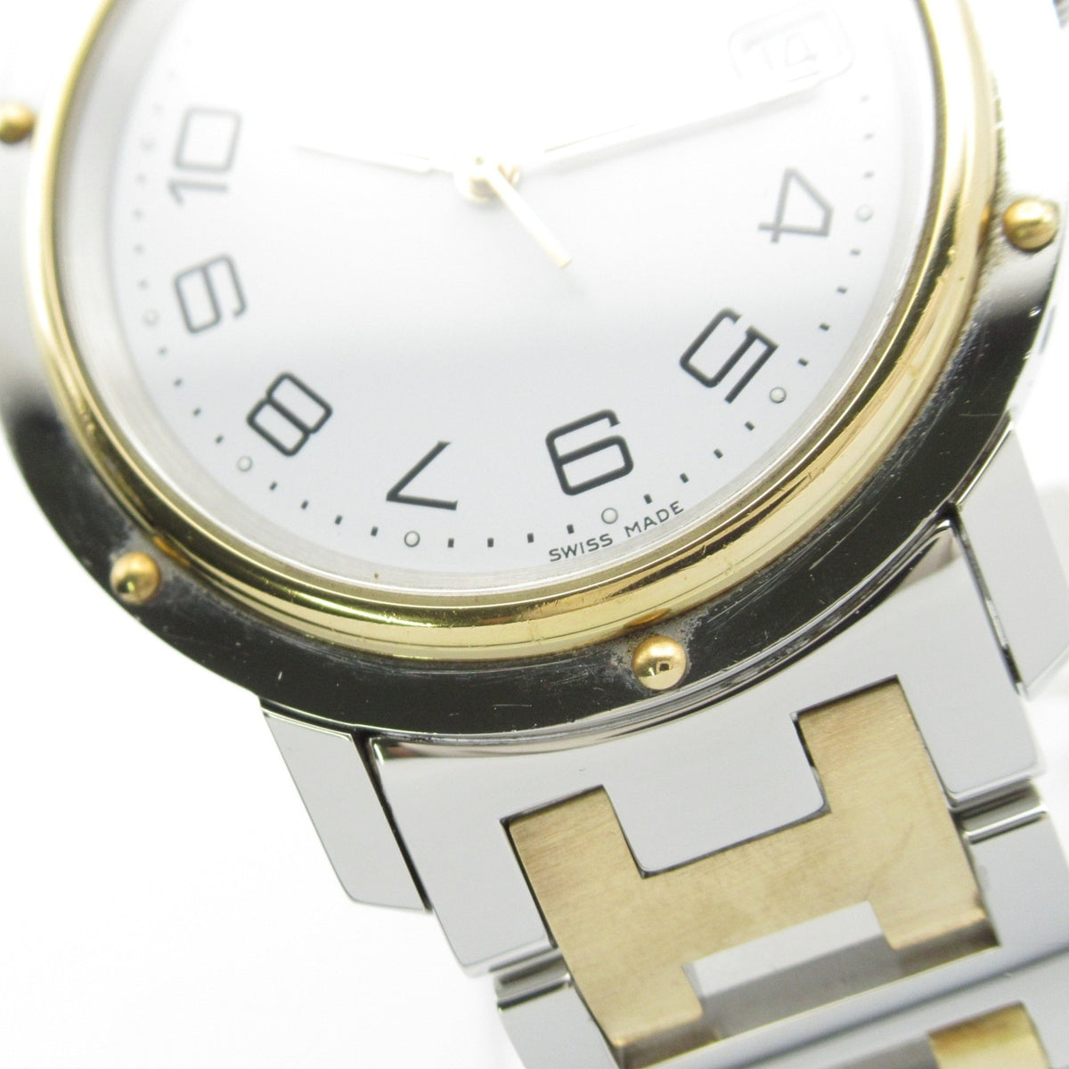 Gebrauchte Hermès Clipper Two-Tone-Uhr, GP (vergoldeter) Edelstahl, Herren, Weiß, CL6.720