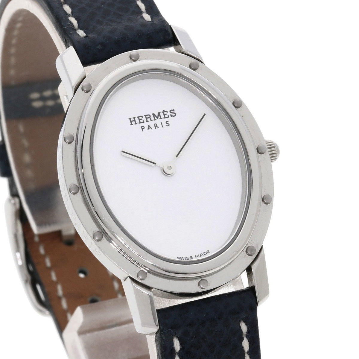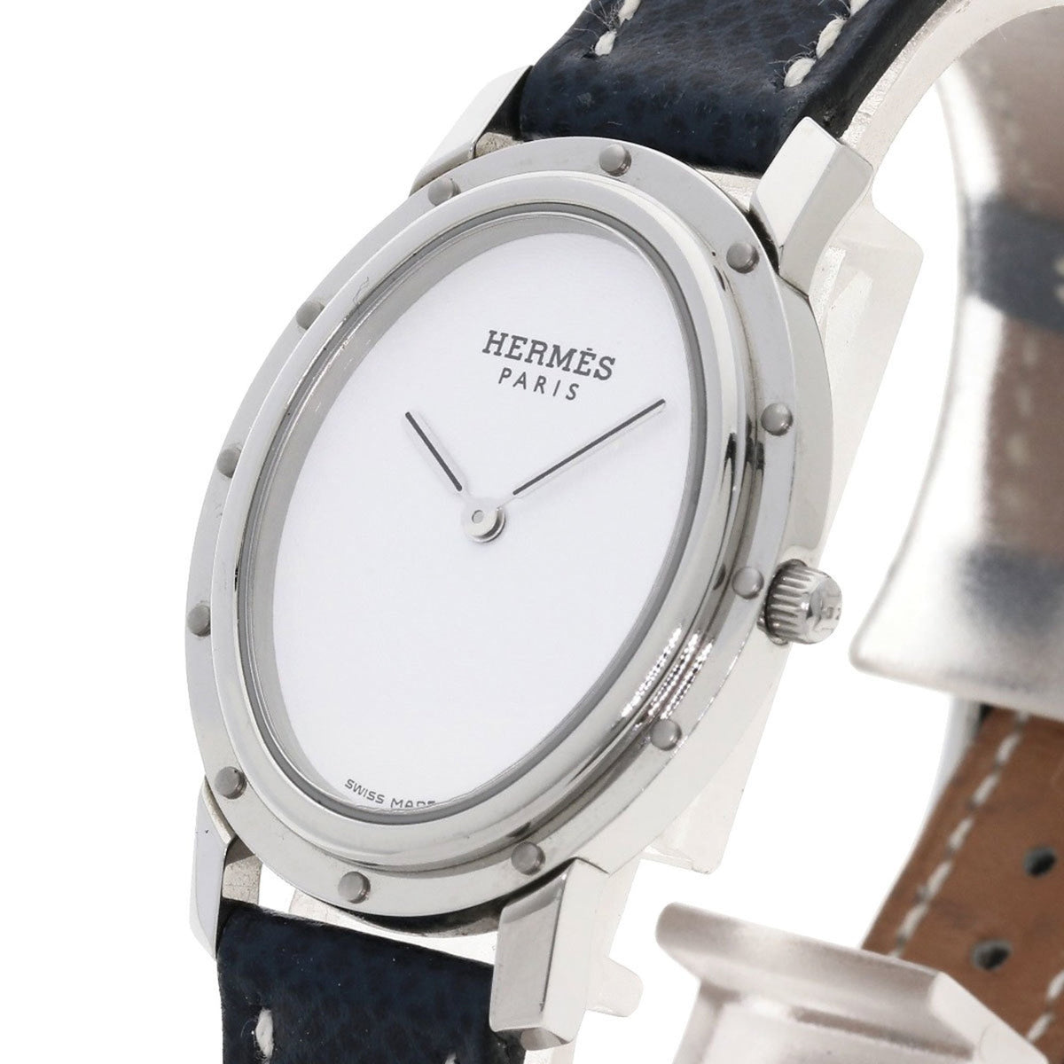 Gebrauchte Hermès CO1.510 Clipper Oval Uhr, Edelstahl und Leder, Damen