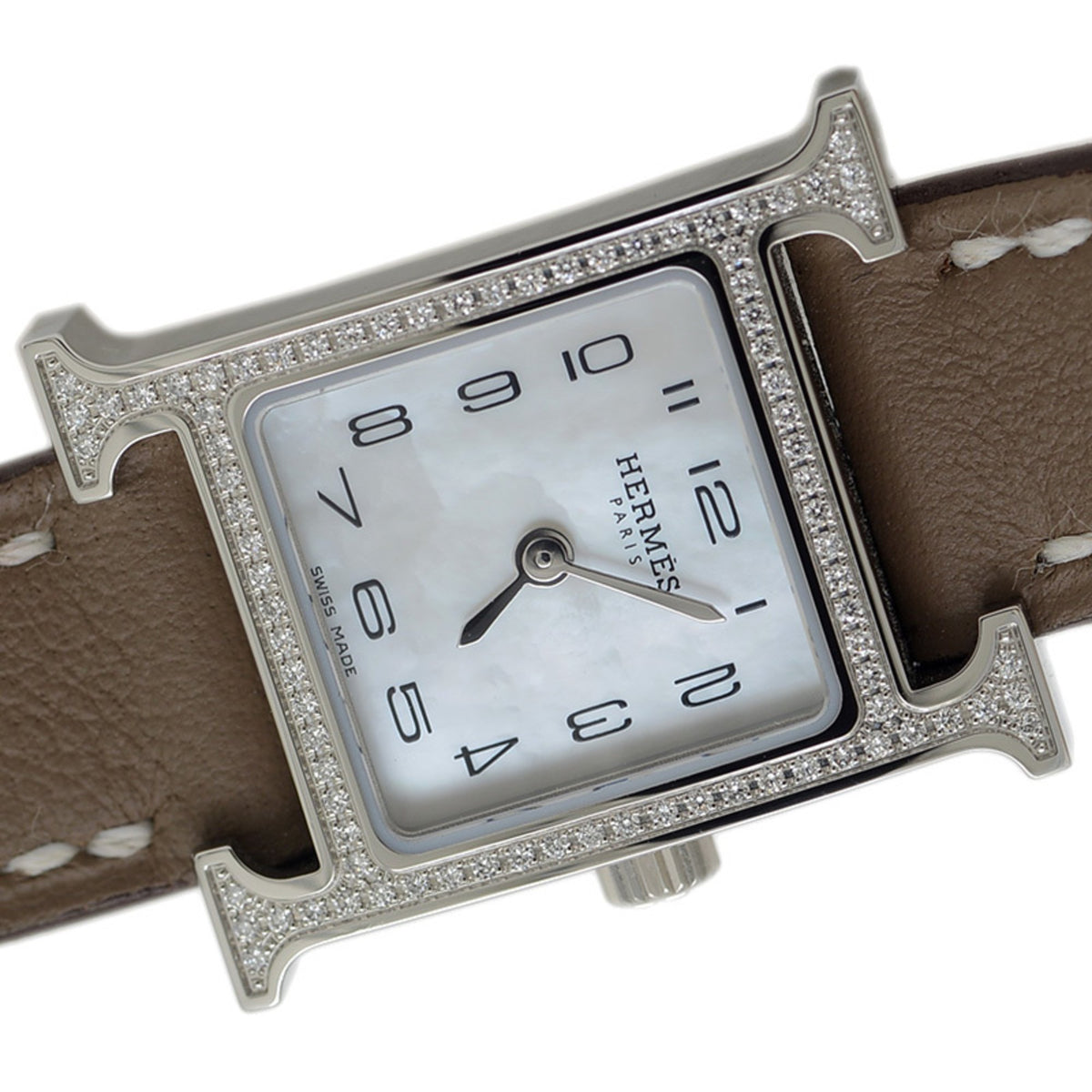 Pre-Owned Herm?s H Watch Mini Diamond Bezel, Shell Dial, Quartz Watch, HH1.131, Women's