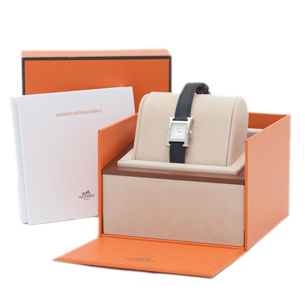 Pre-Owned Herm?s H Watch Mini Women's Silver Dial Leather Strap Quartz Movement HH1.110
