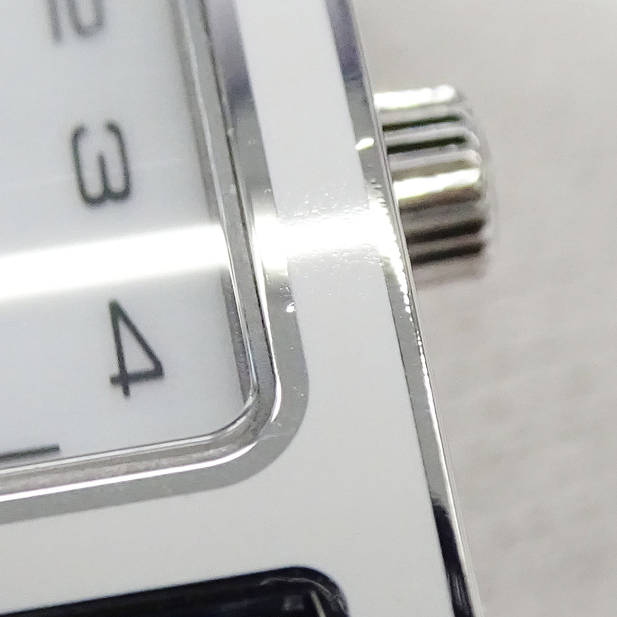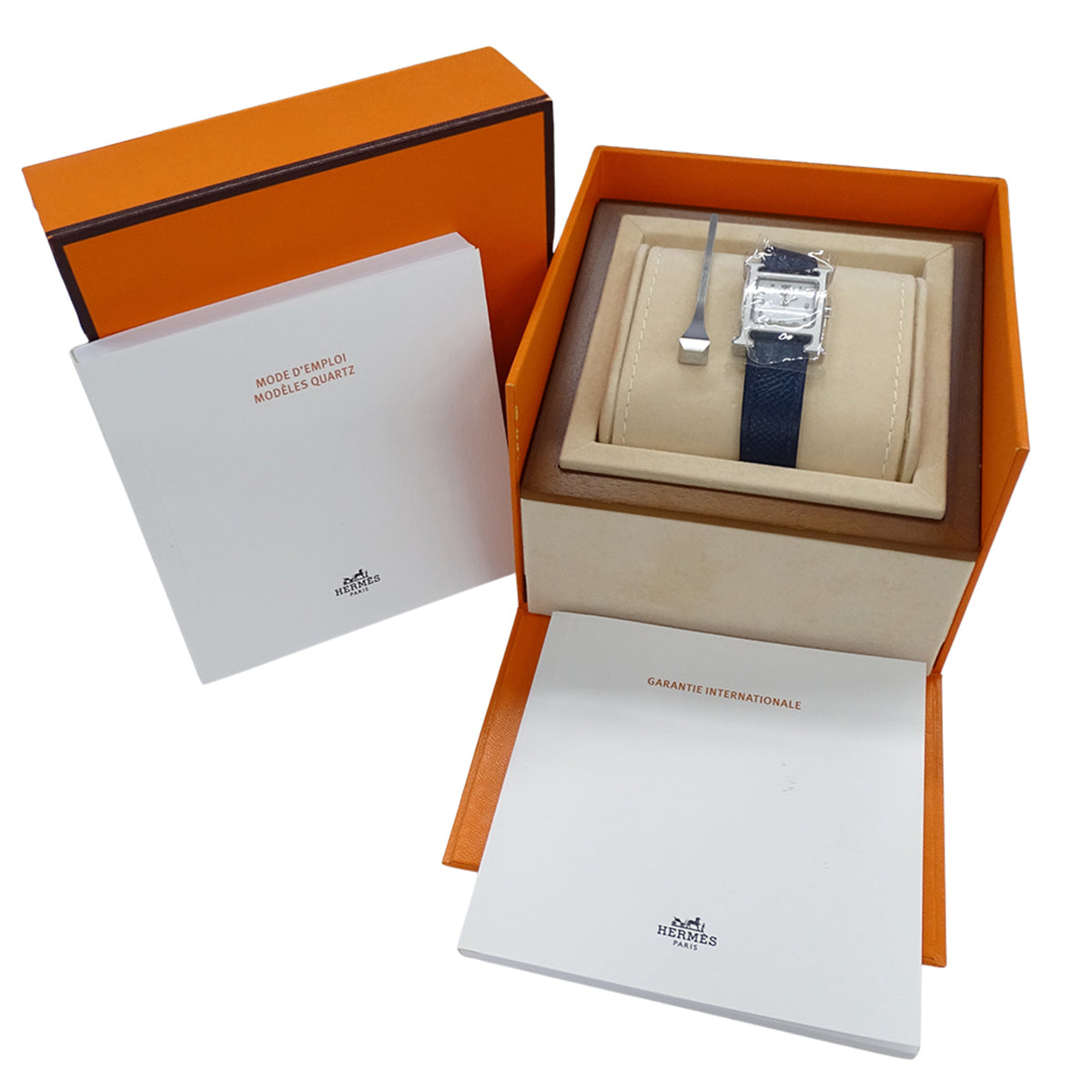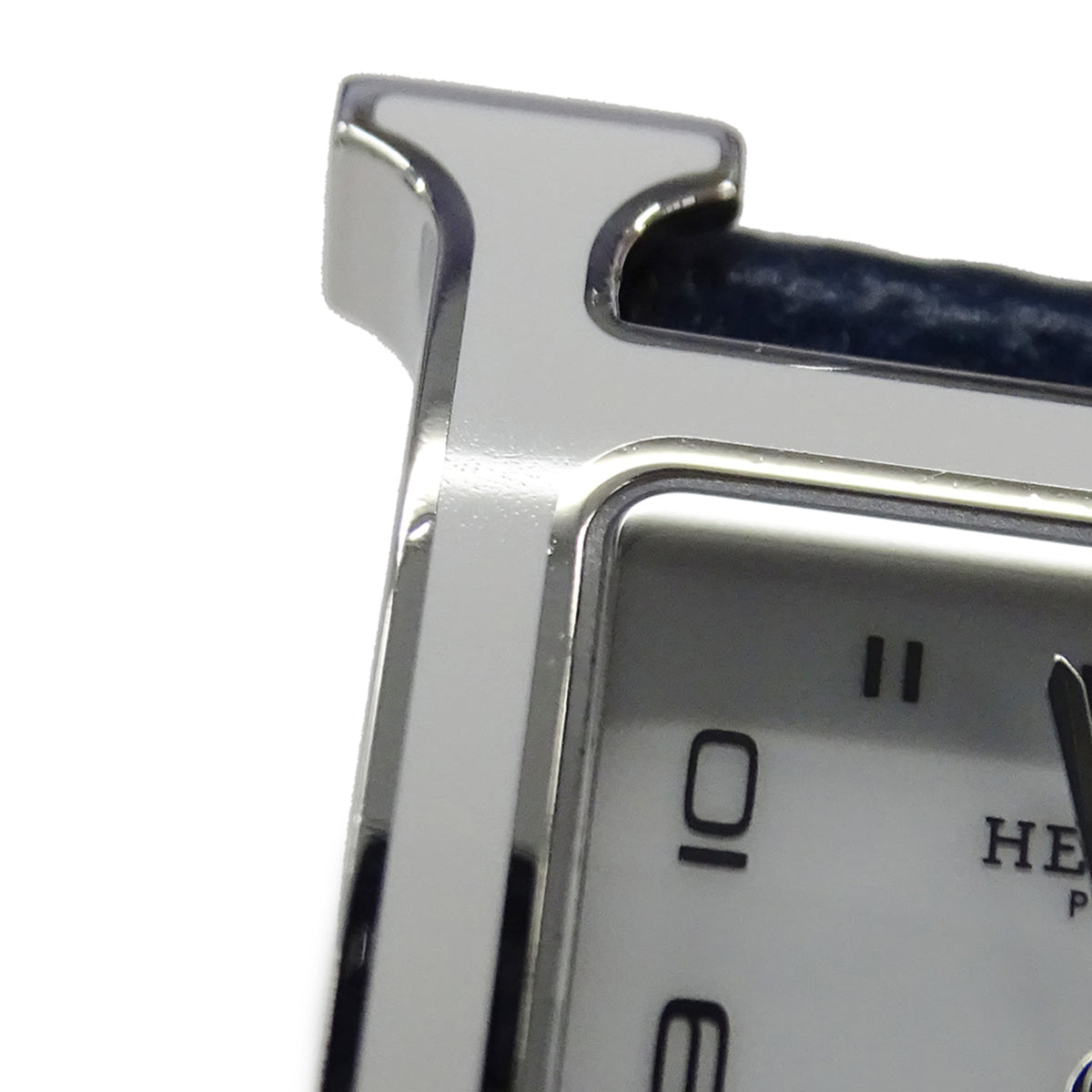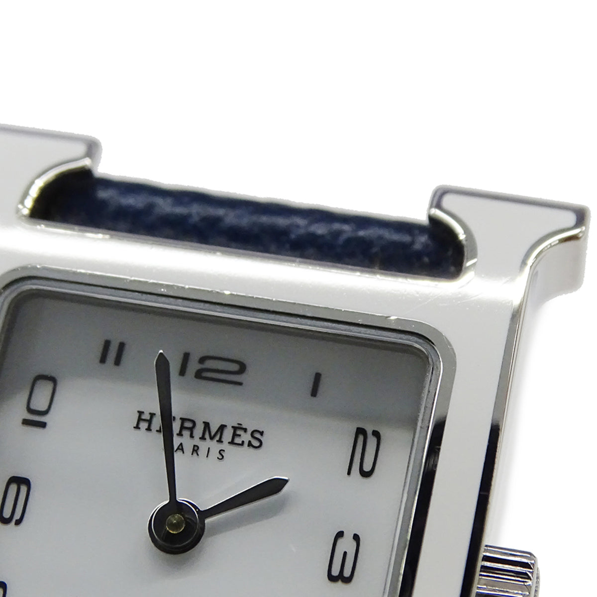 Pre-Owned Herm?s H Watch Women's Quartz QZ Stainless Steel with Leather Strap HH1.220 White Navy Polished