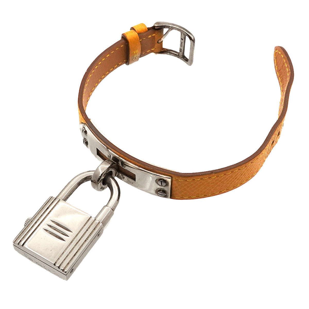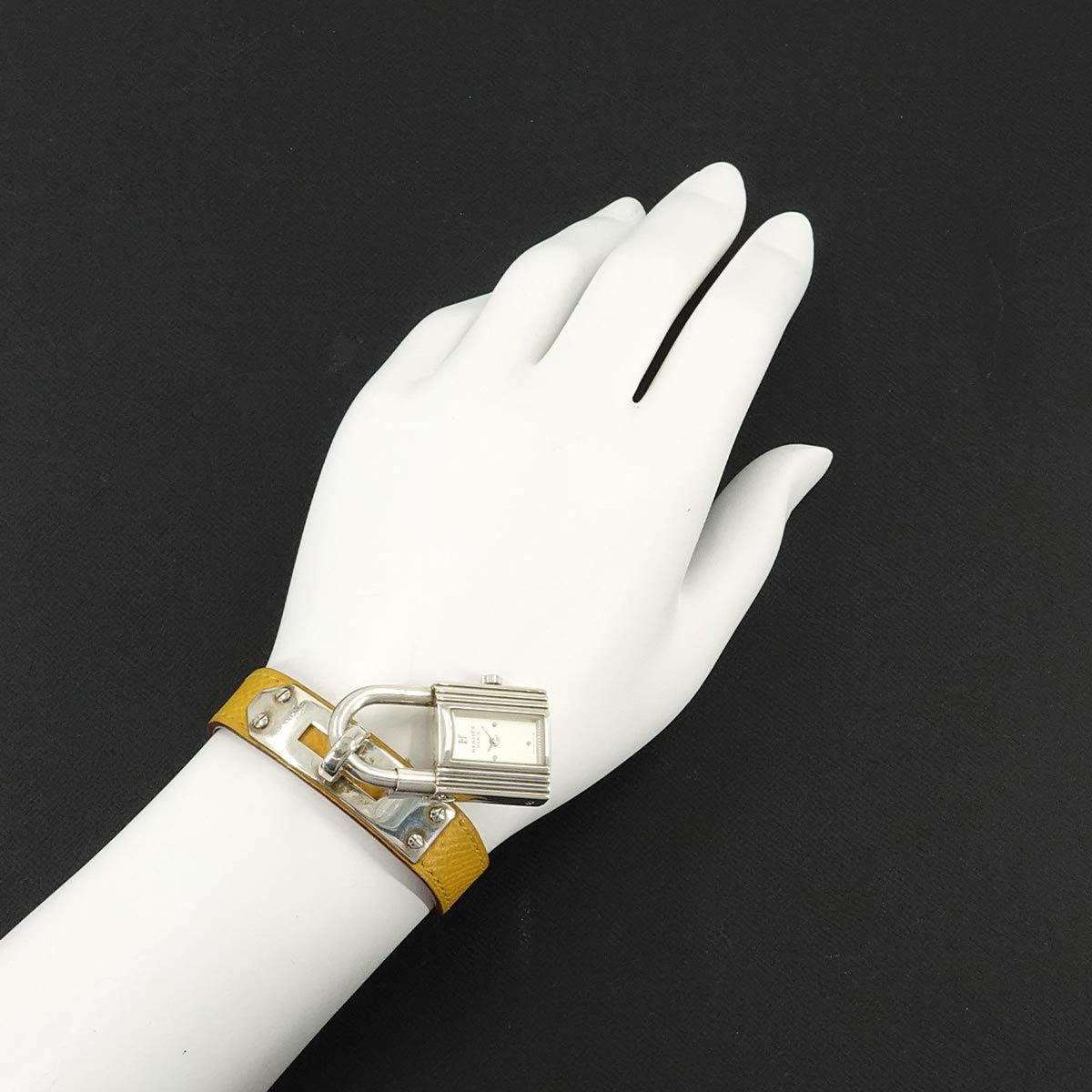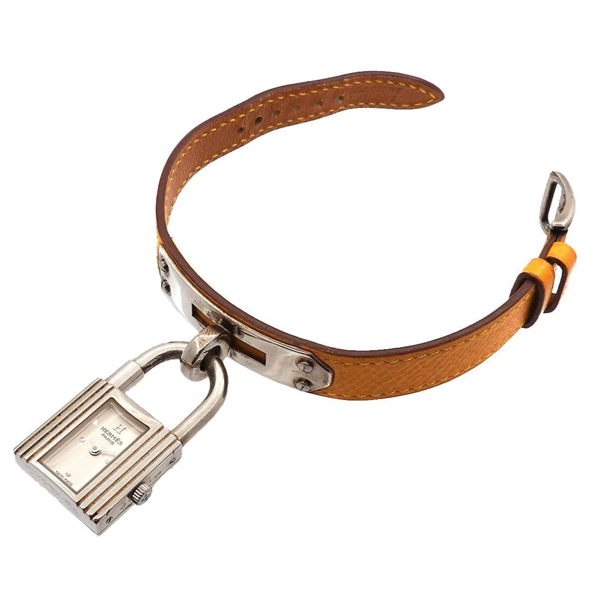 Pre-Owned Herm?s Kelly Watch for Women, Silver SV925 with Yellow Leather Quartz Movement and Cadena Strap
