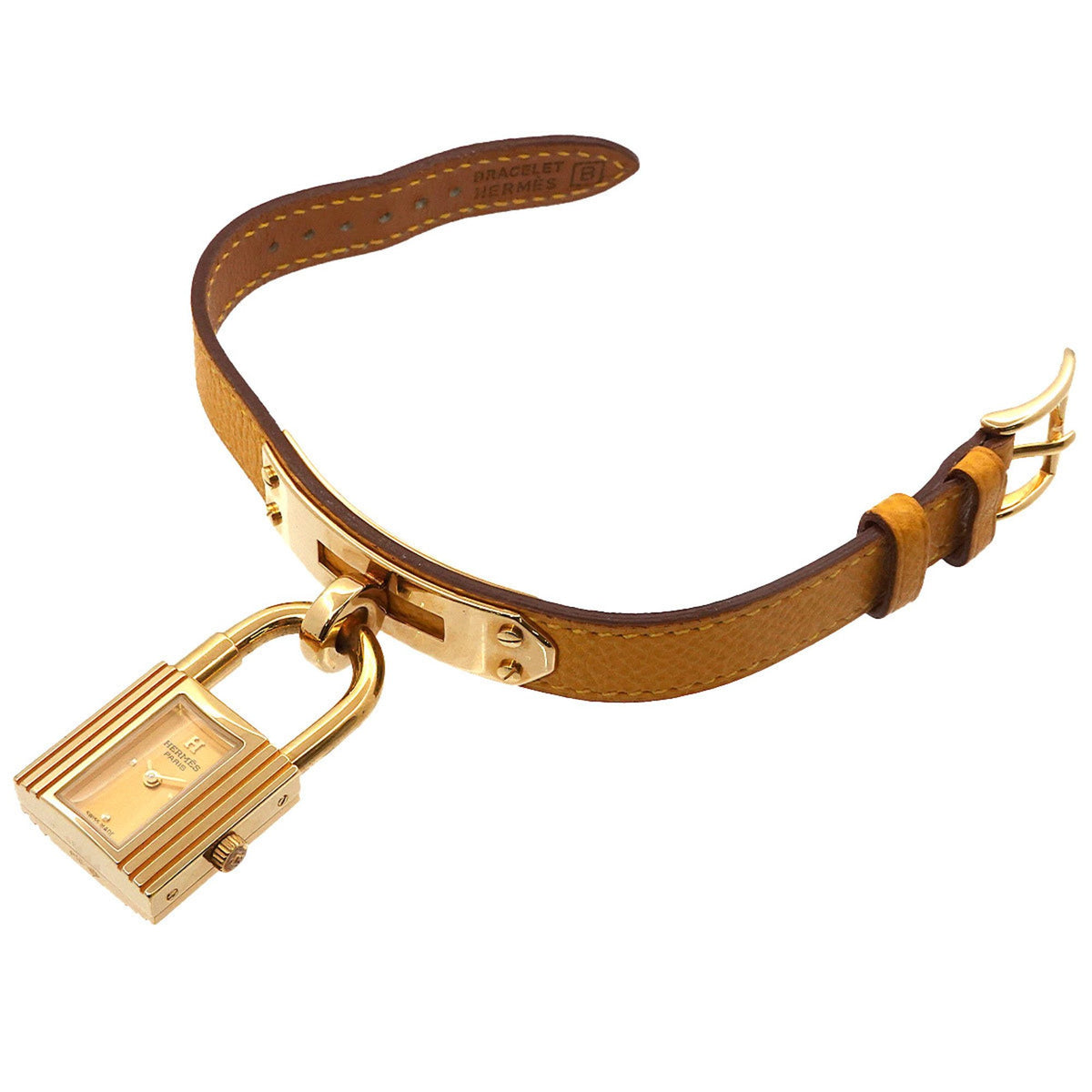 Pre-Owned Herm?s Kelly Watch Women's Gold and Yellow Quartz with Cadena