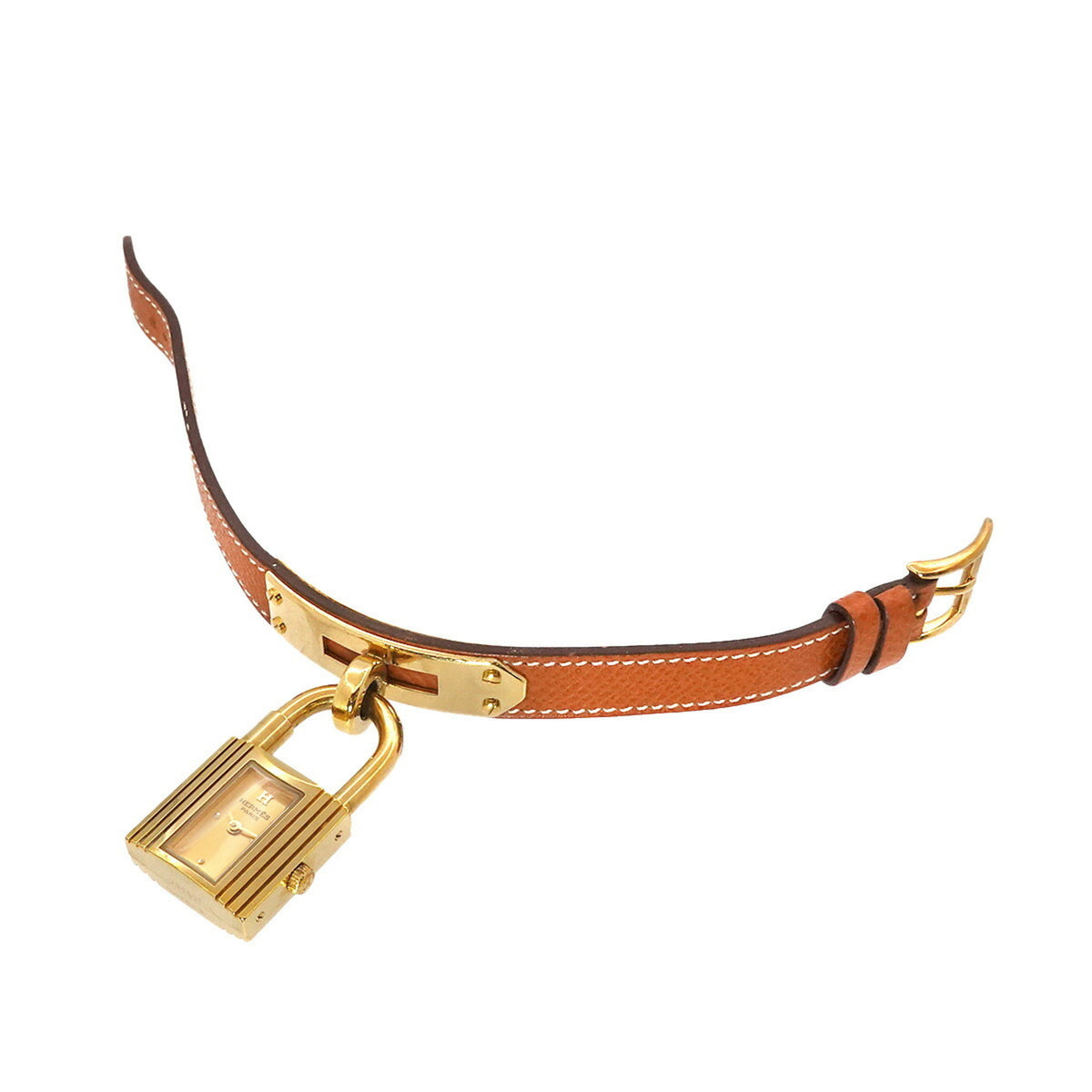 Pre-Owned Herm?s Kelly Watch Women's Gold Brown Quartz with Cadena