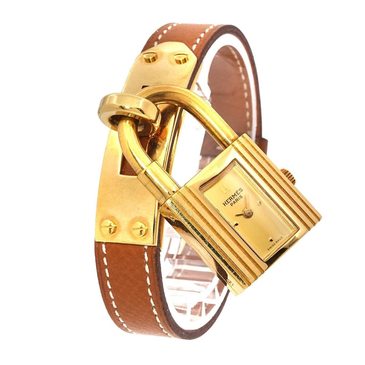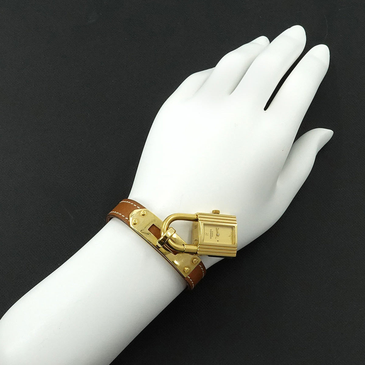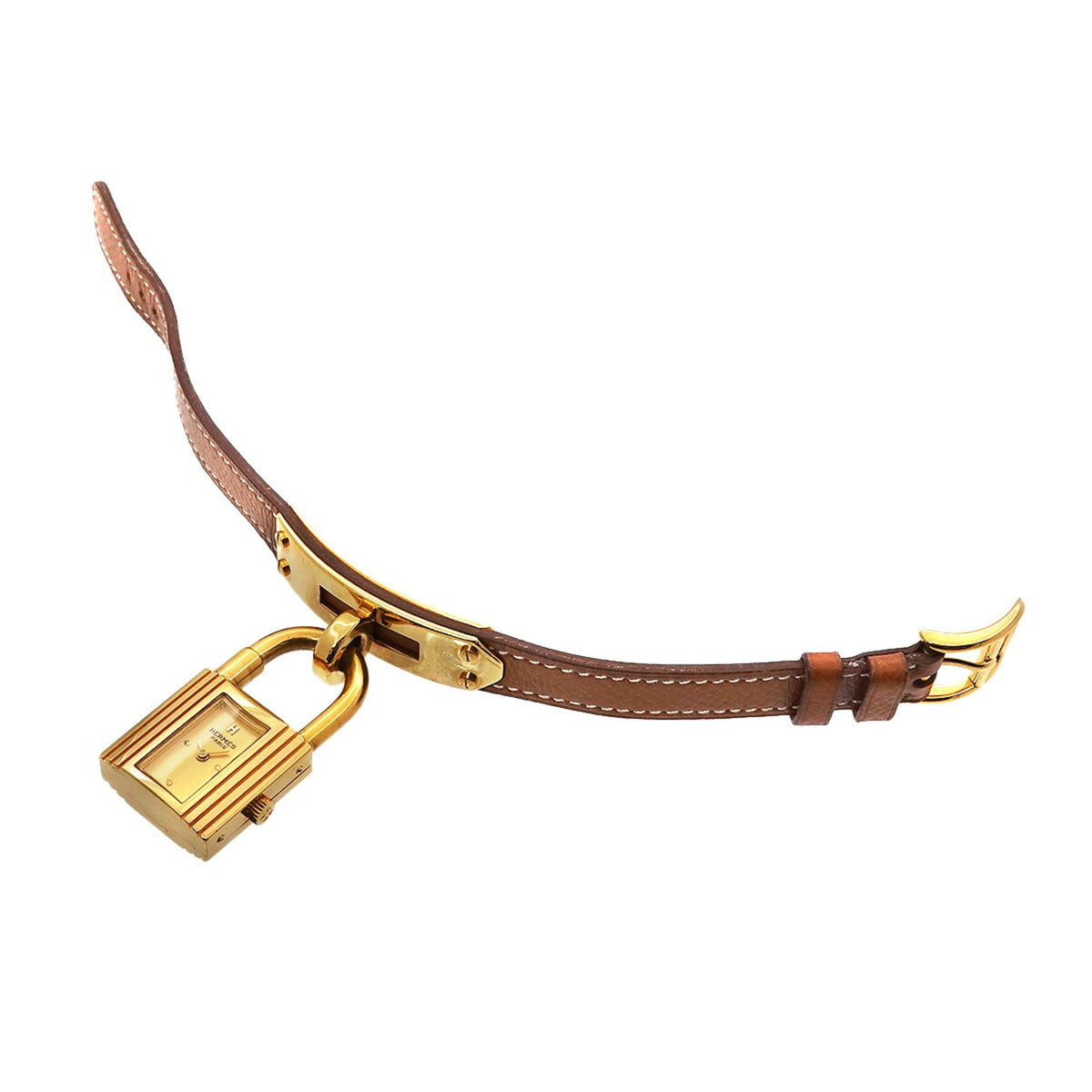 Pre-Owned Herm?s Kelly Watch Women's Gold Brown Quartz with Cadena