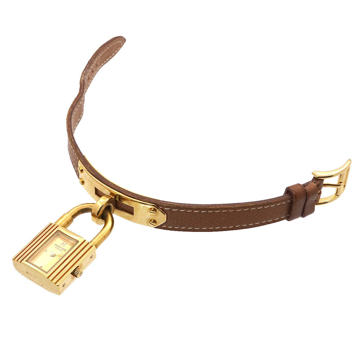 Pre-Owned Herm?s Kelly Watch Women's Gold Brown Quartz with Cadena