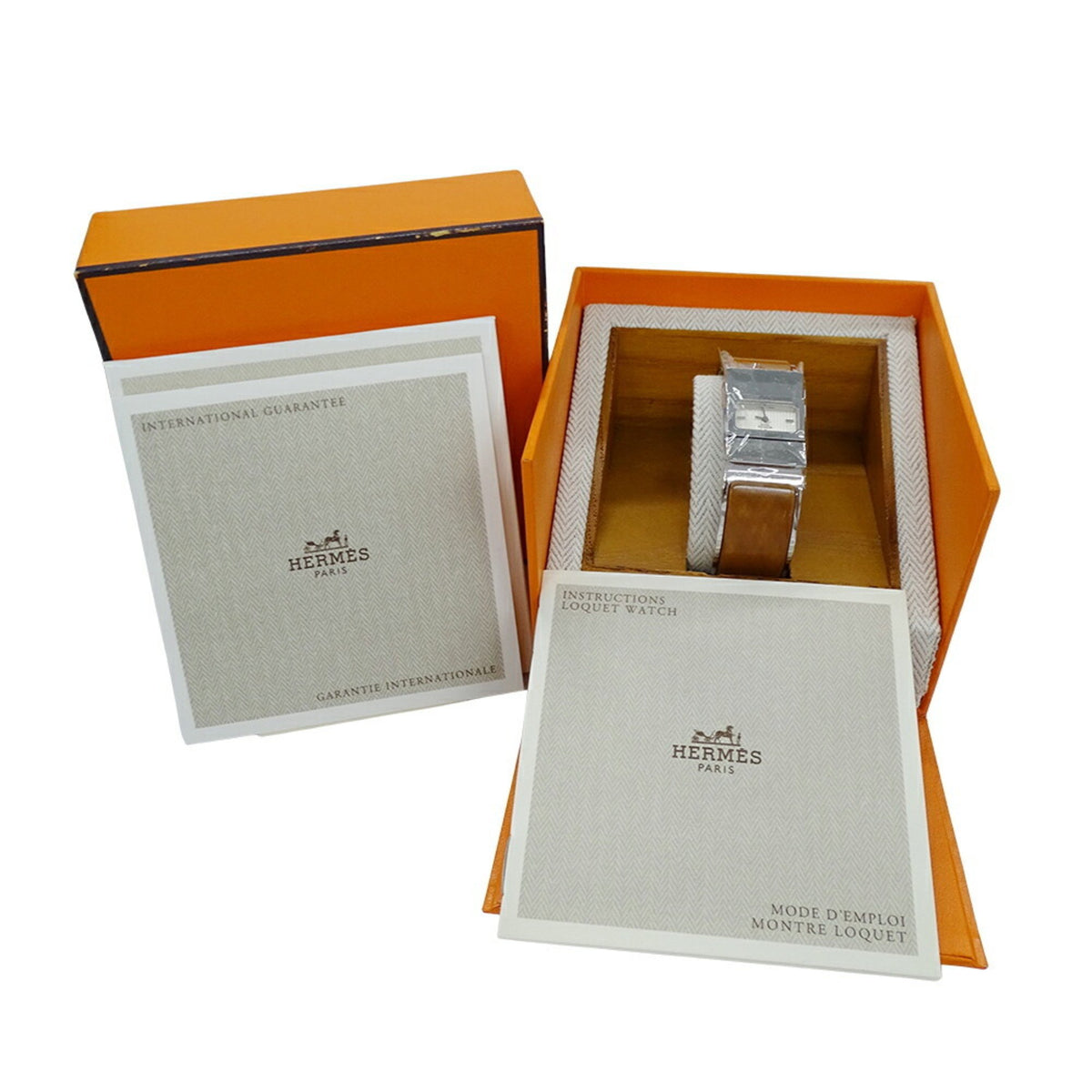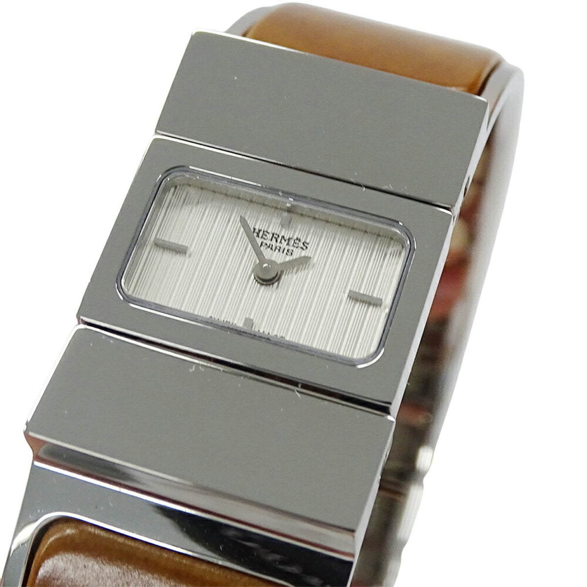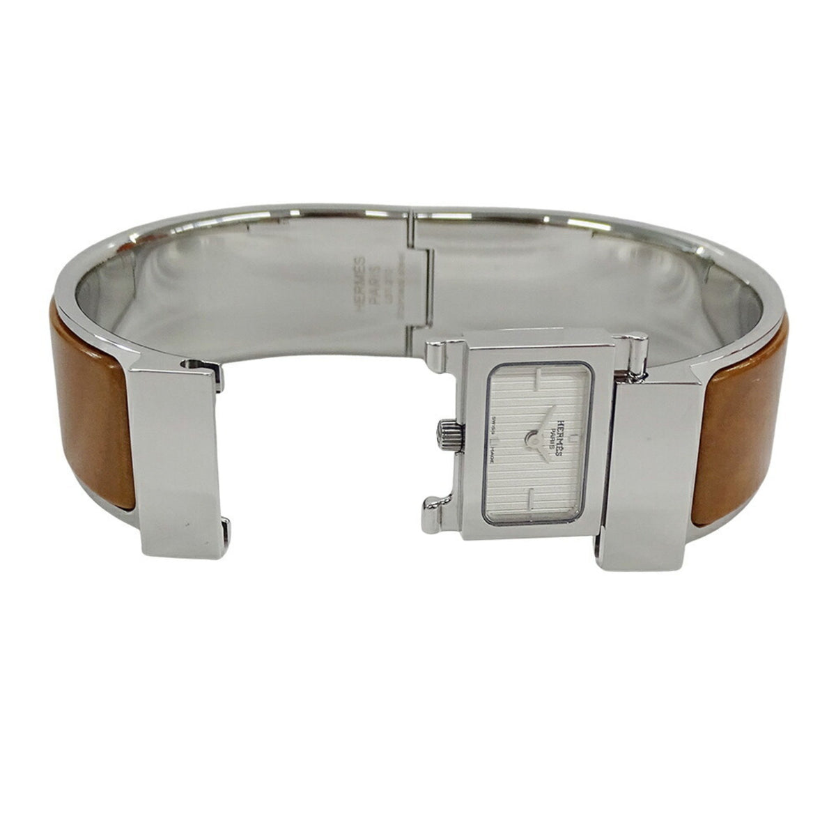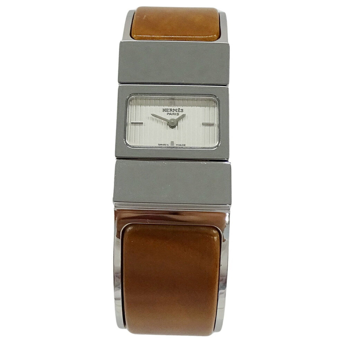 Pre-Owned Herm?s Women's L01.210 Quartz Stainless Steel Watch with Bangle, Silver and Brown, Polished