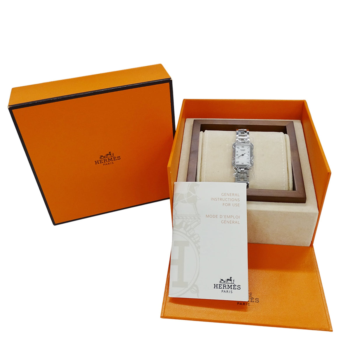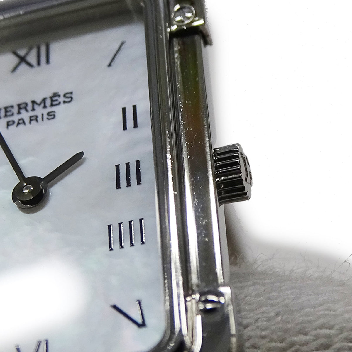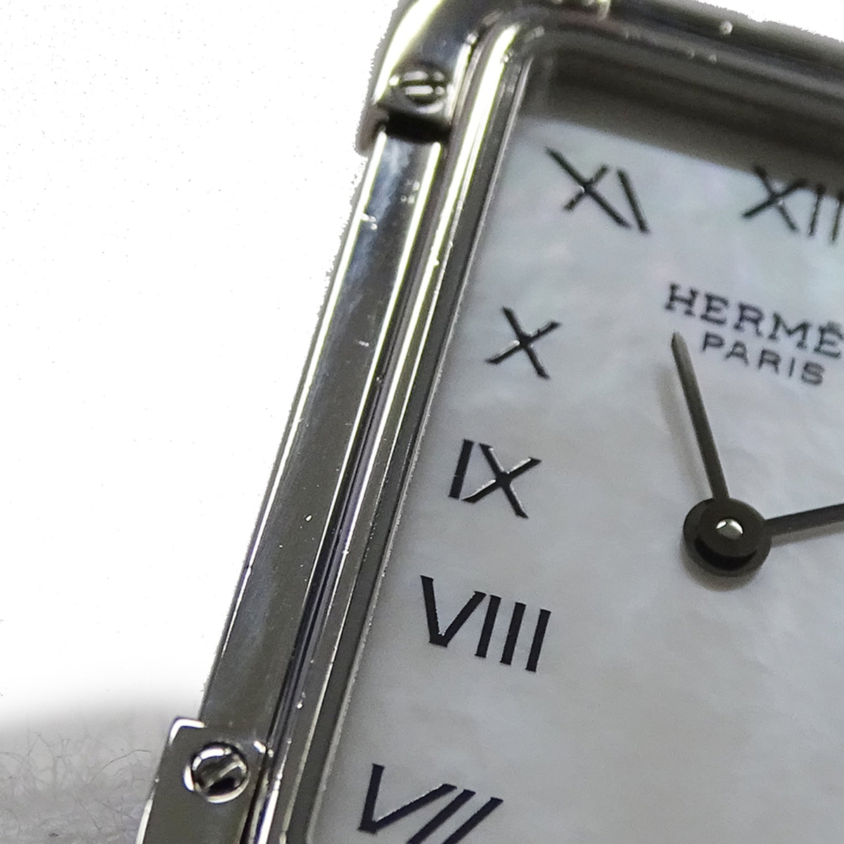 Pre-Owned Herm?s Women's Watch, Cloiseur Shell Quartz Movement, Stainless Steel, CR2.210, Silver, Square, Polished