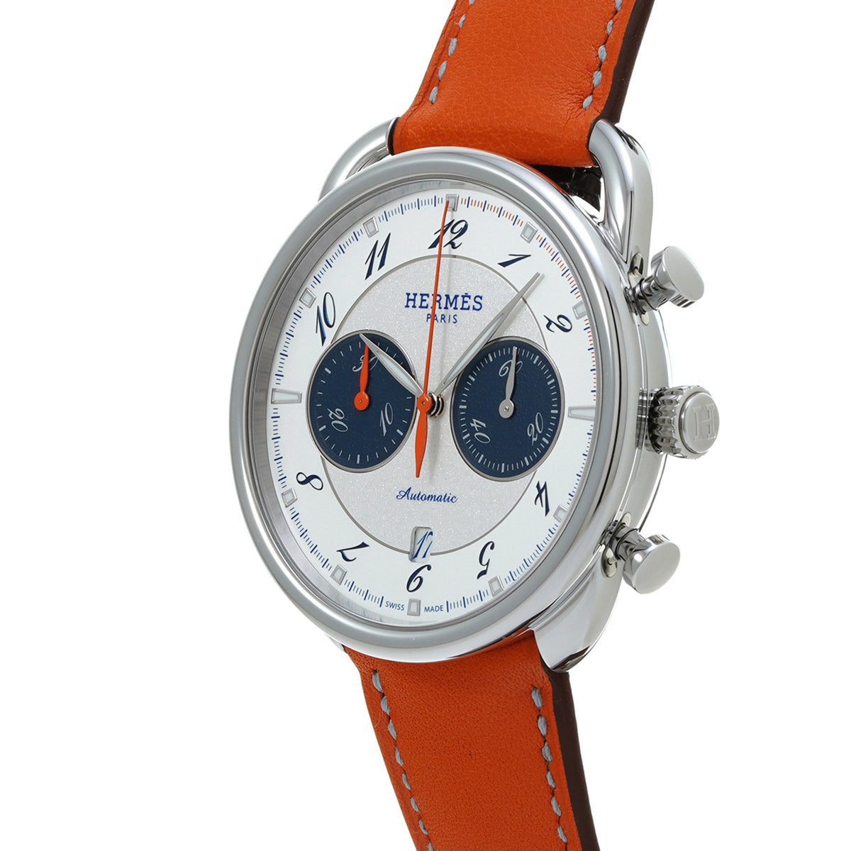 Gebrauchte Hermes Arceau Chronograph AR15.910 Silber Weiß Herrenuhr Automatik