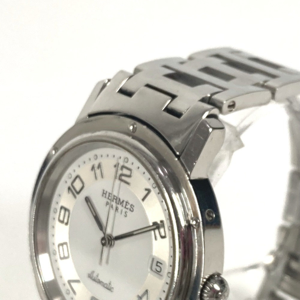 Gebrauchte HERMES CL1.810 Clipper Date Herrenuhr Edelstahl Silber