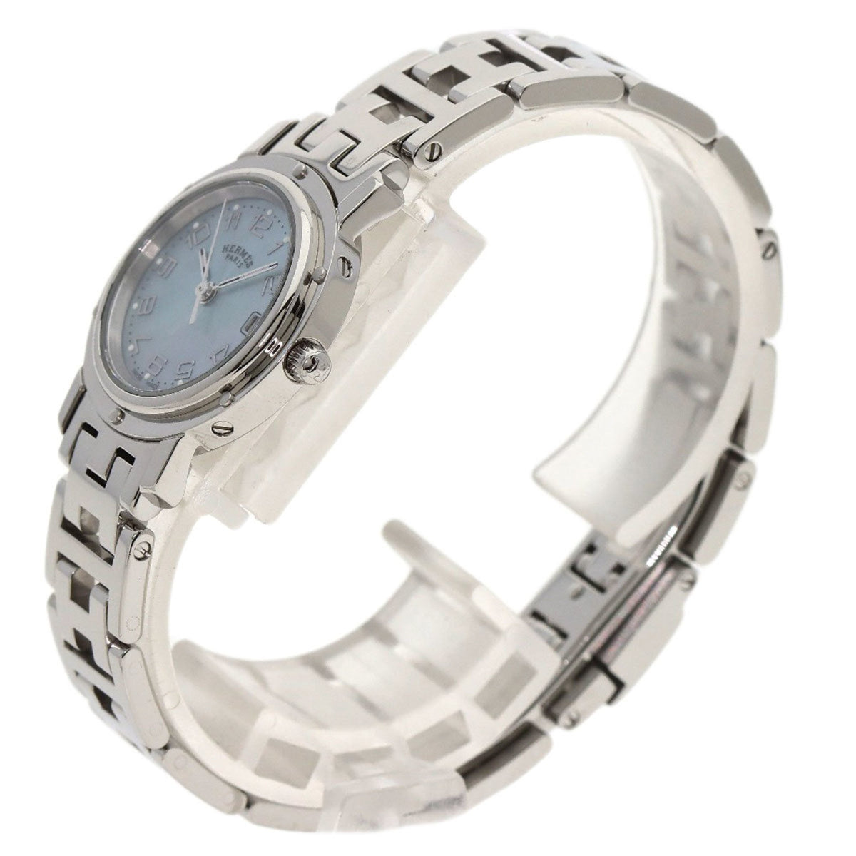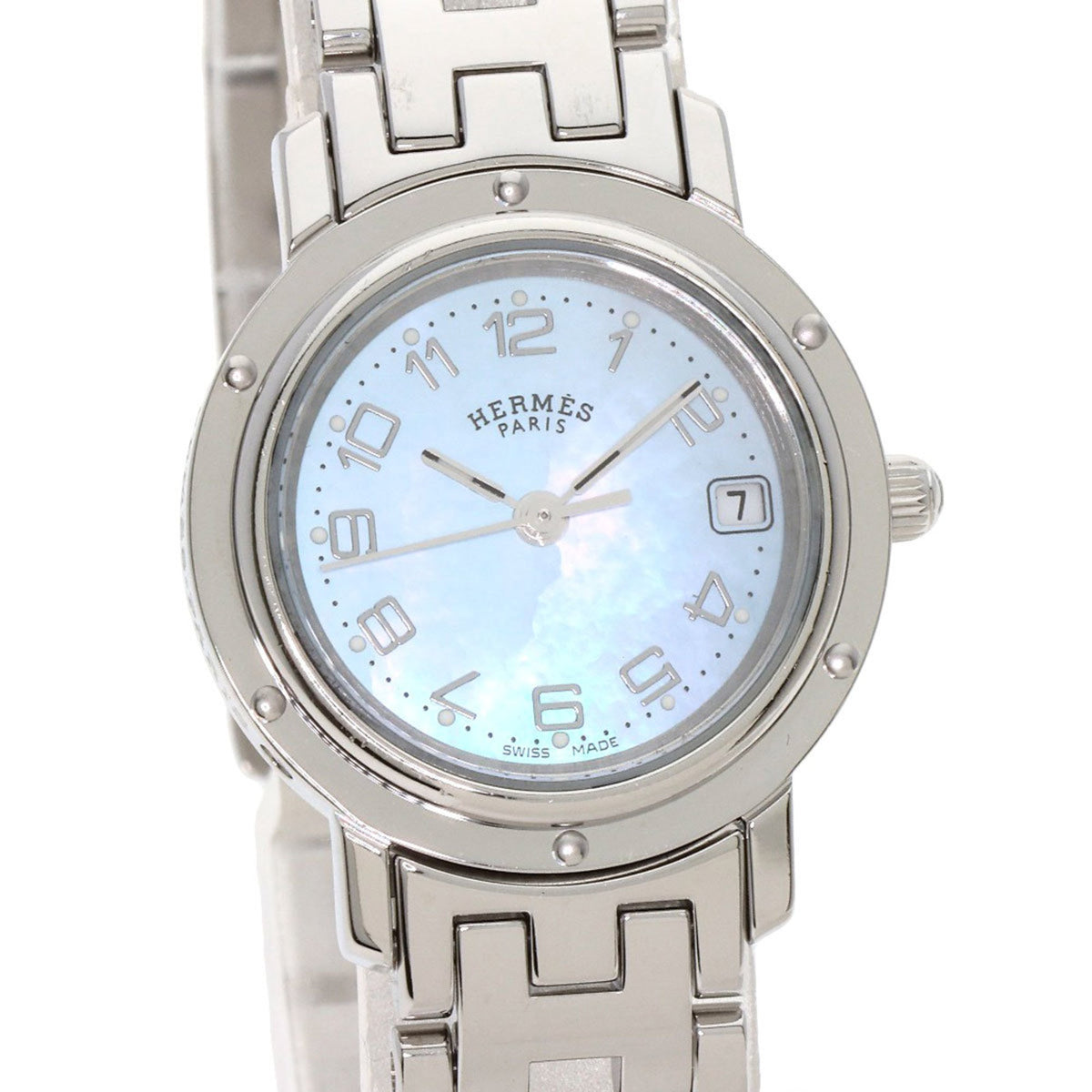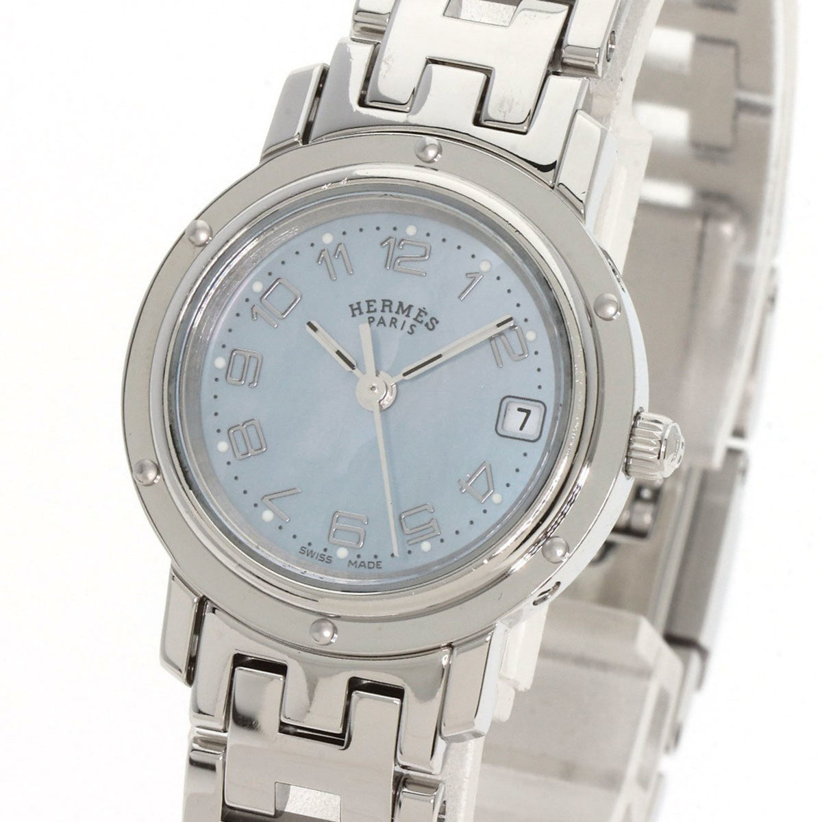 Gebrauchte Hermes CL4.210 Clipper Nacr? Neue Schnalle Uhr Edelstahl SS Damen HERMES