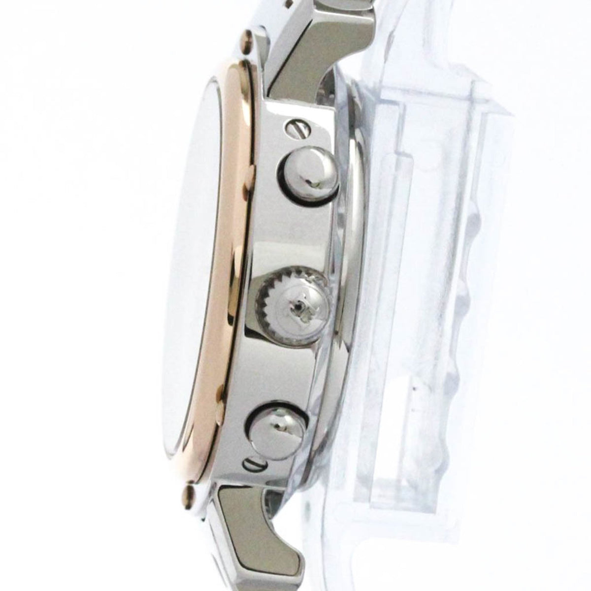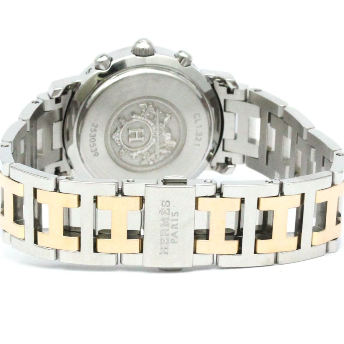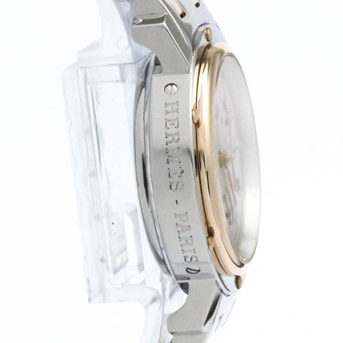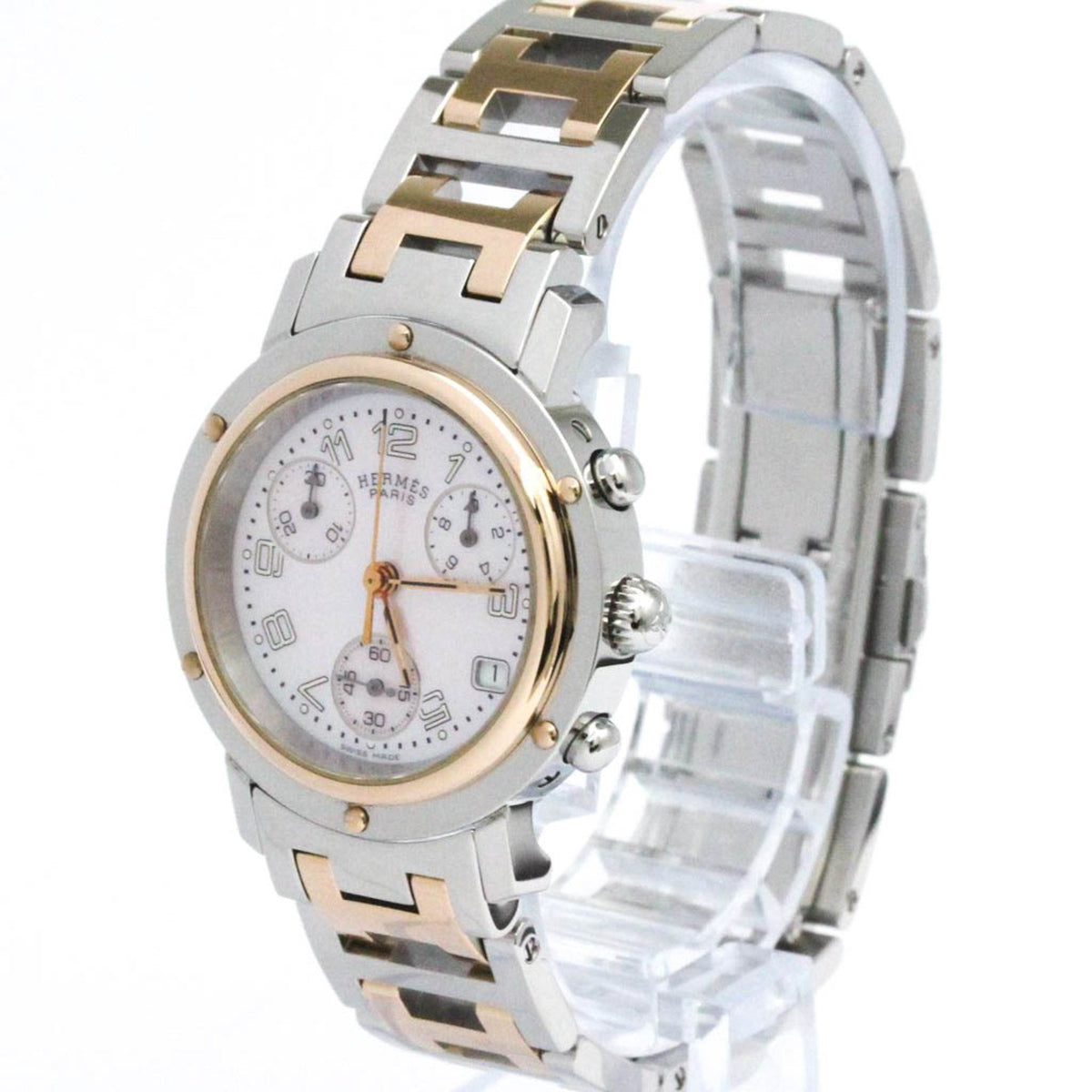 Gebrauchte HERMES Clipper Chronograph MOP Roségold plattierte Stahluhr CL1.321 Poliert