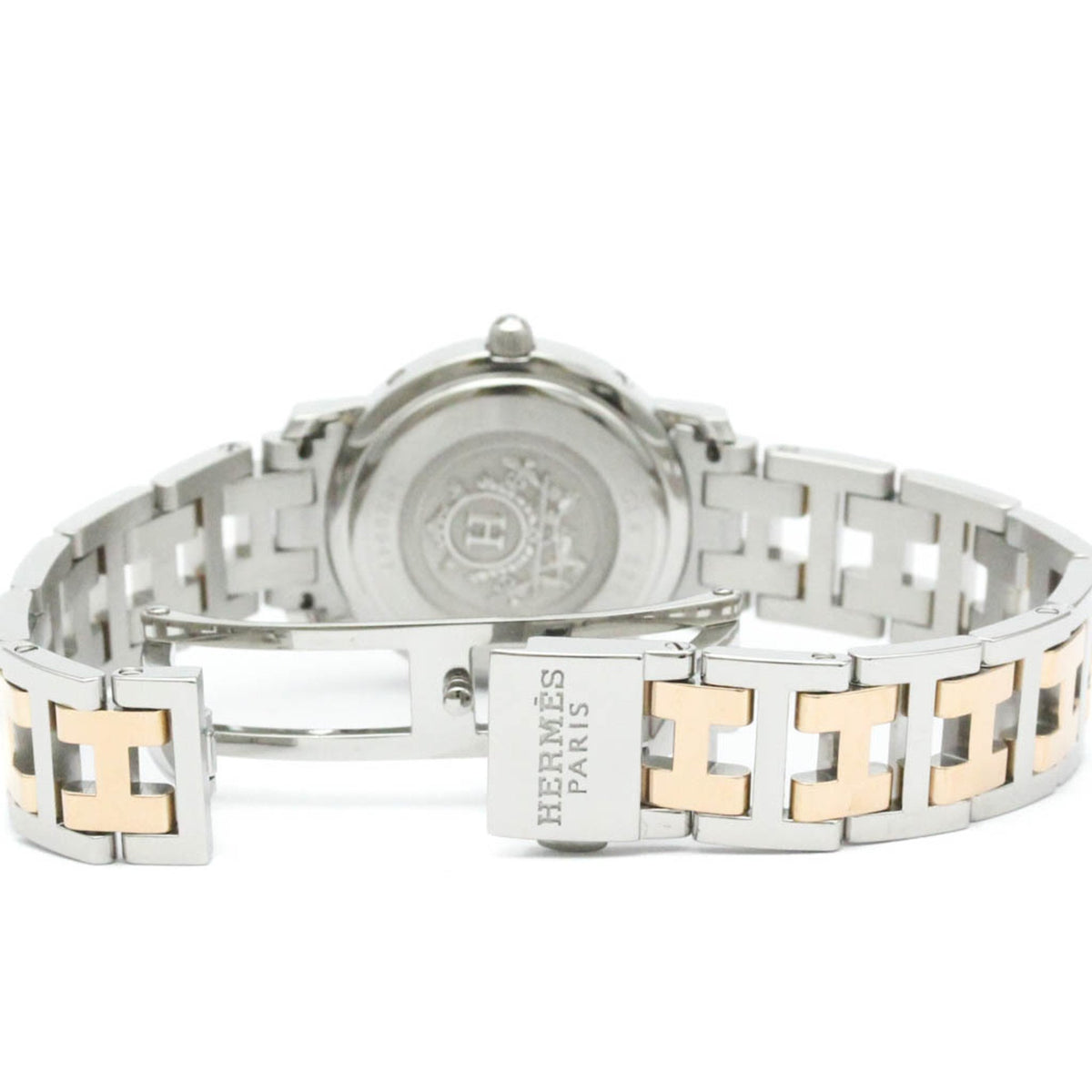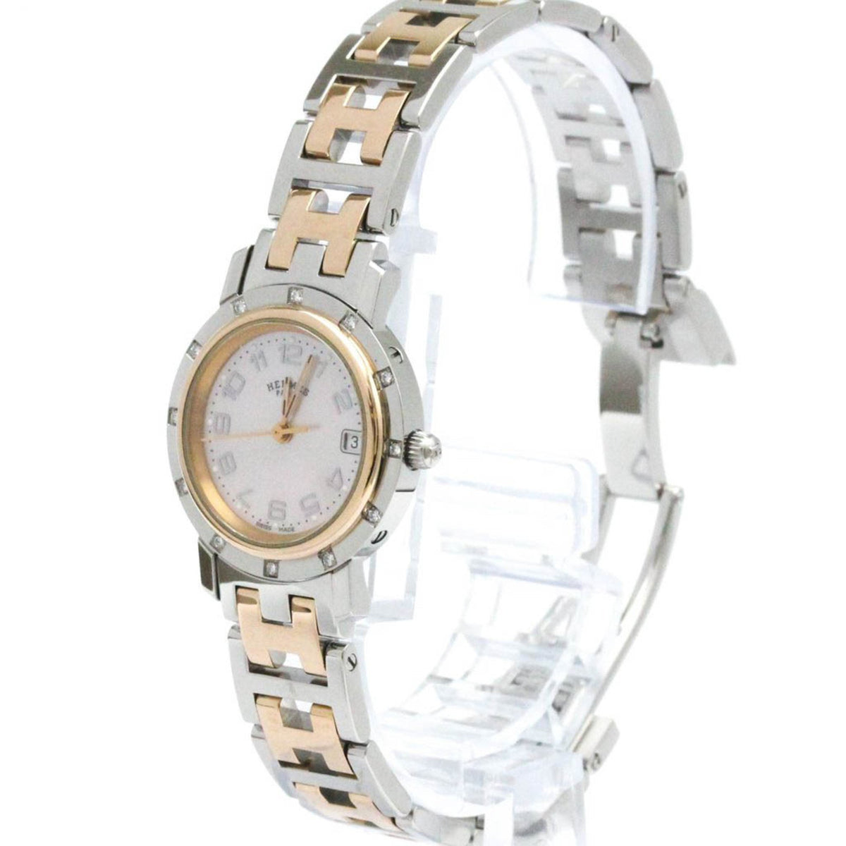 Gebrauchte HERMES Clipper Diamond Pink MOP Zifferblatt Quarzuhr CL4.222 poliert