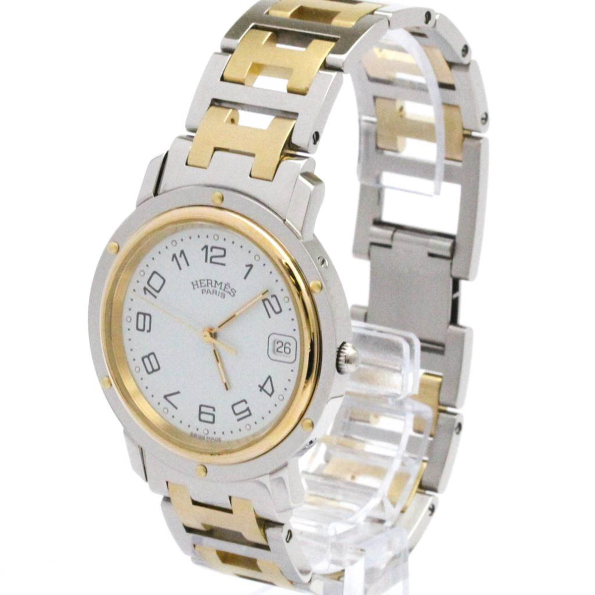 Pre-Owned HERMES Clipper Gold Pllated Steel Quartz Mens Watch CL3.740
