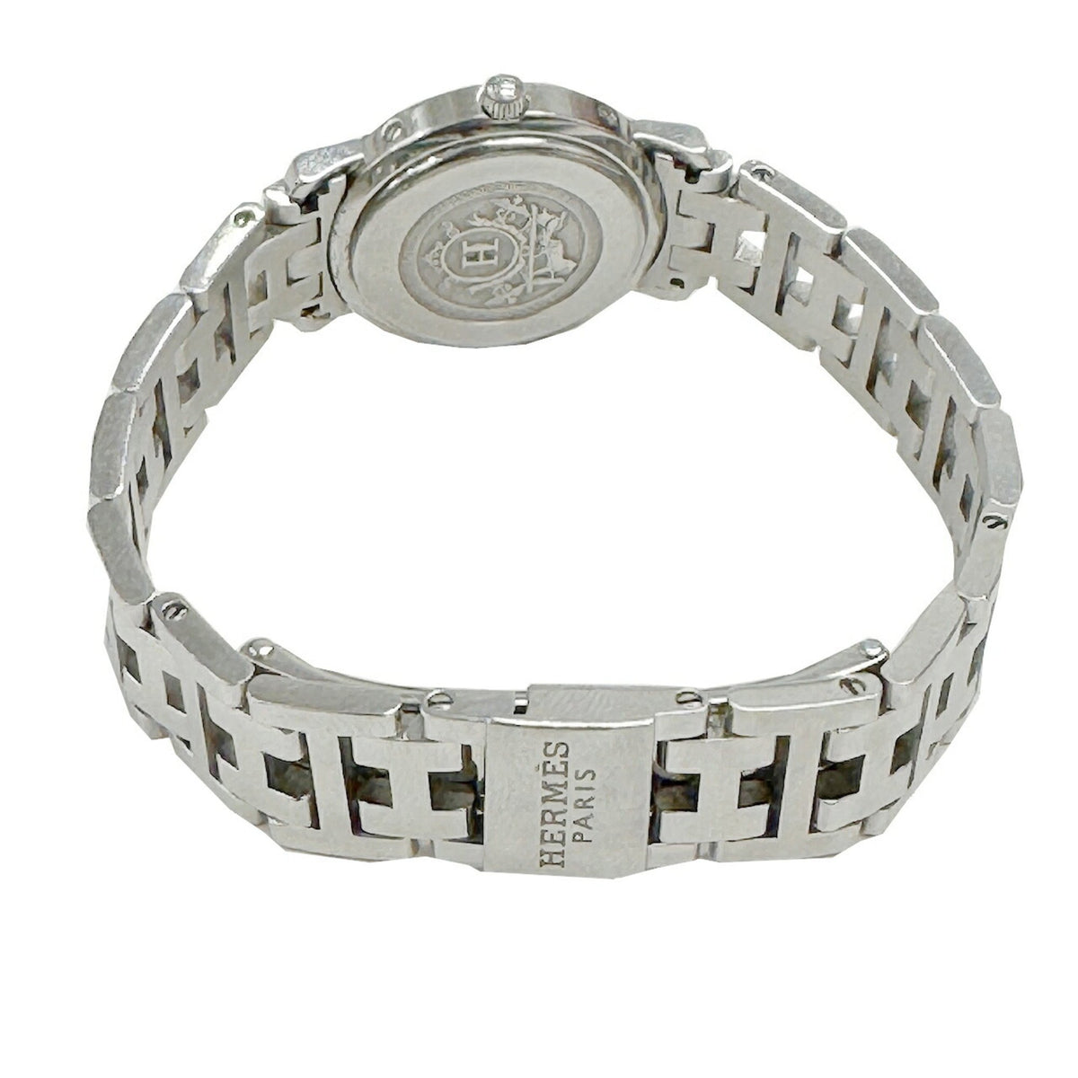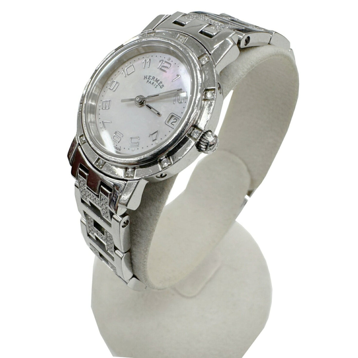 Gebrauchte HERMES Clipper Nacle CL4.230.214 3870 Stück limitierte Auflage Kalender 12-Punkt-Diamant-Lünette H-Gurt rosa Muschelzifferblatt SS Quarz analoge Armbanduhr Damen