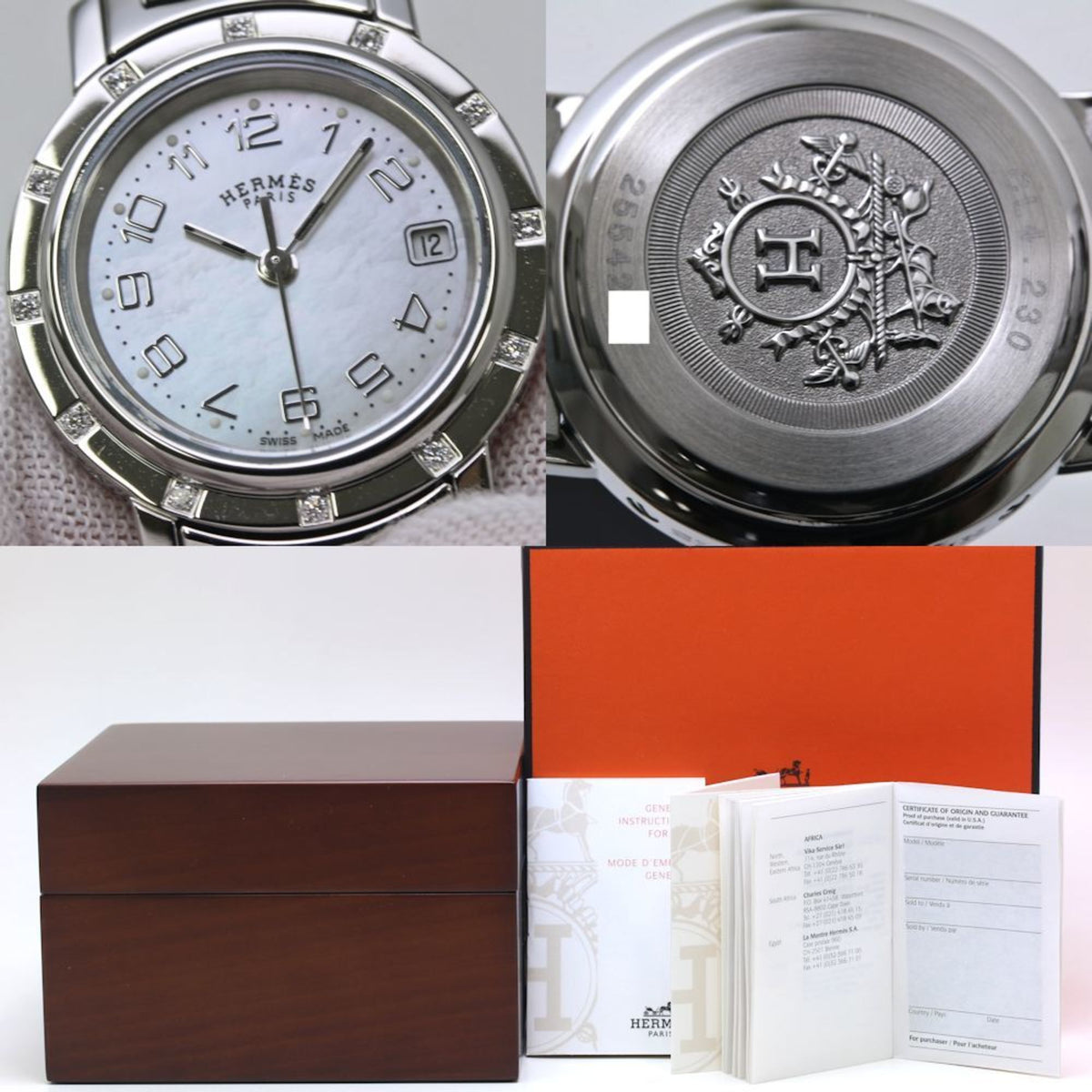 Pre-Owned HERMES Clipper Nakre 12-Piece Bezel with Diamond Bracelet, Women's Watch, CL4.230.212 3825, New Stainless Steel Buckle, 40048
