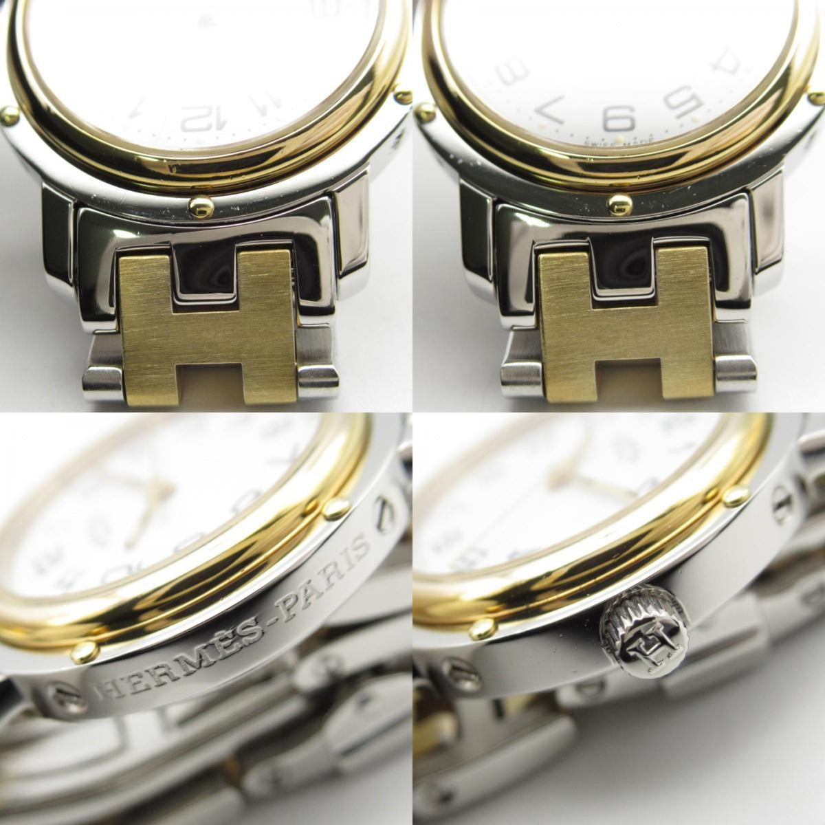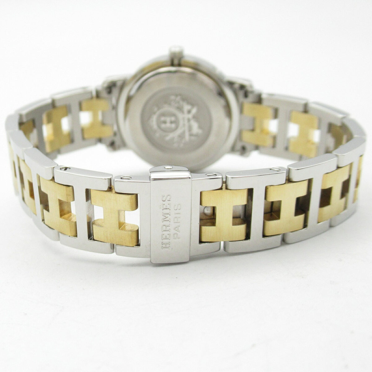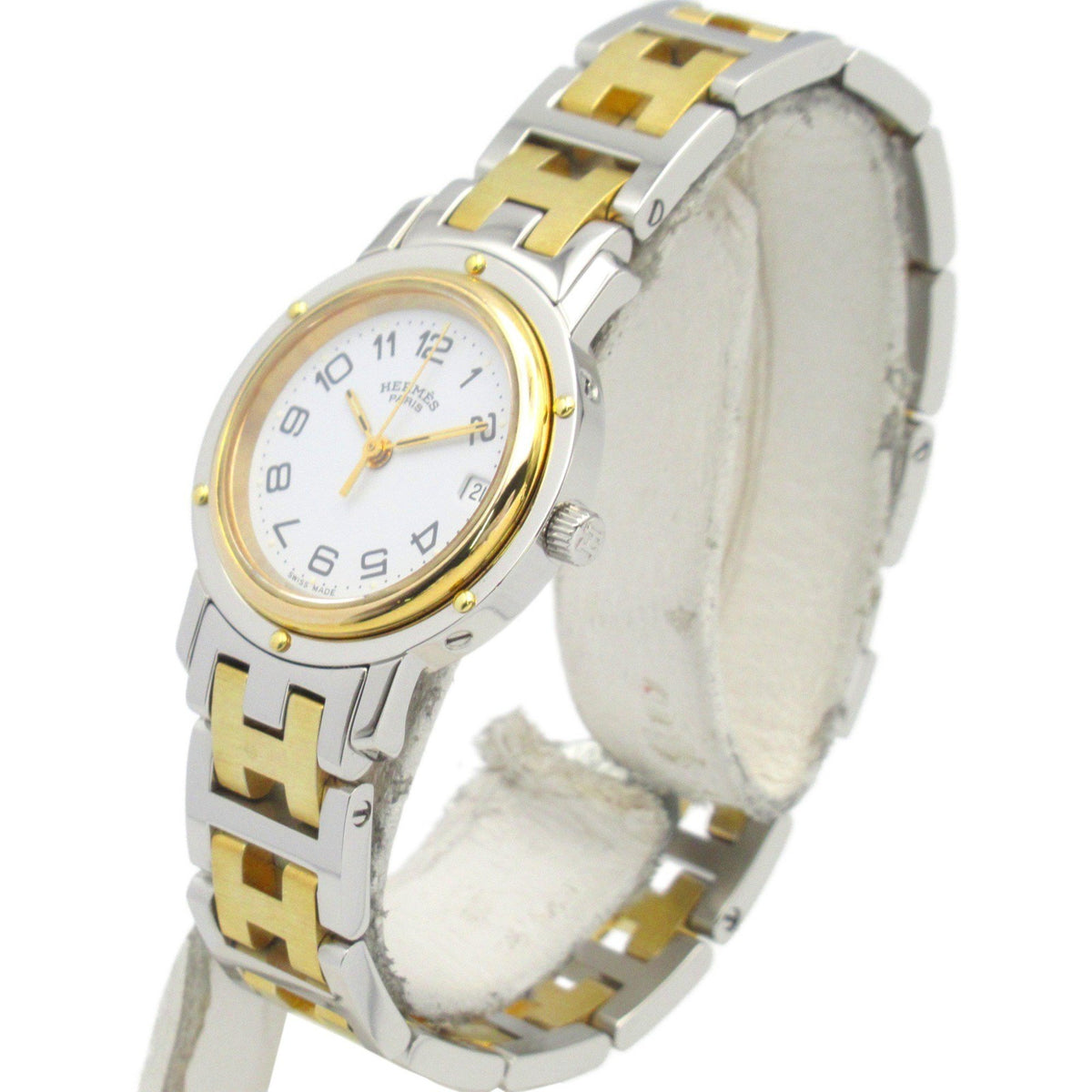 Gebrauchte Hermes Clipper Uhr GP (vergoldet) Edelstahl Damen Weiß CL3.240