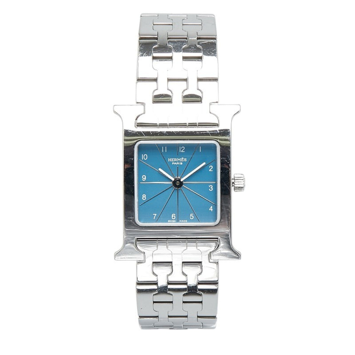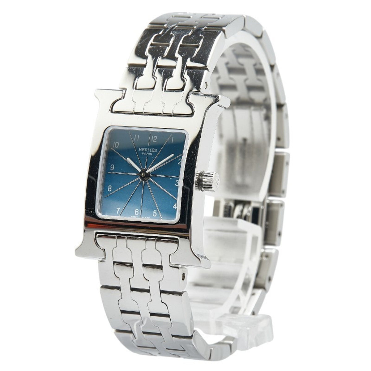 Gebrauchte Hermes H Uhr HH1.210 Quarz Blaues Zifferblatt Edelstahl Damen HERMES