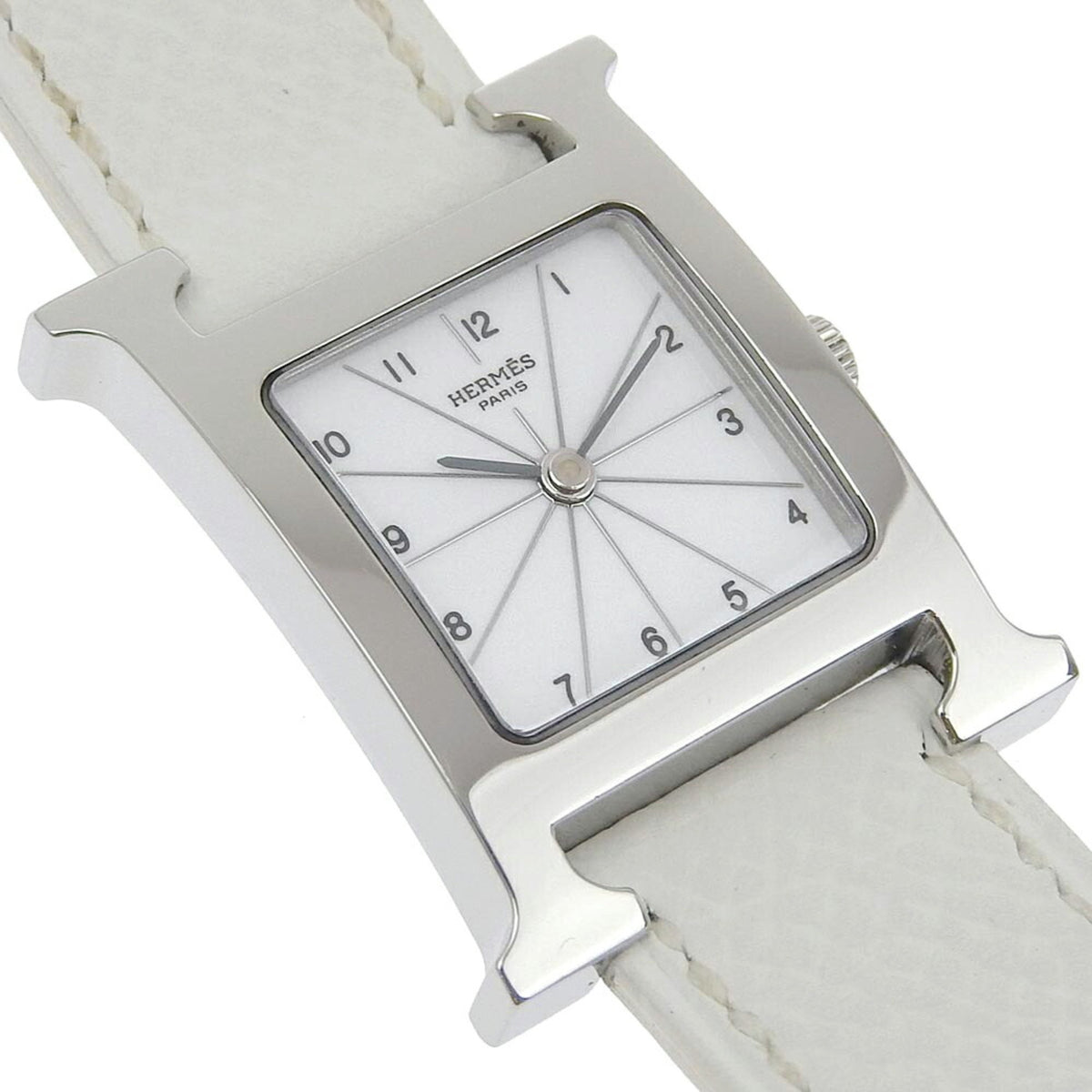 Gebrauchte Hermes HERMES H Uhr Armbanduhr HH1.210 Edelstahl x Leder 2005 Quarz Analoganzeige Weißes Zifferblatt Damen
