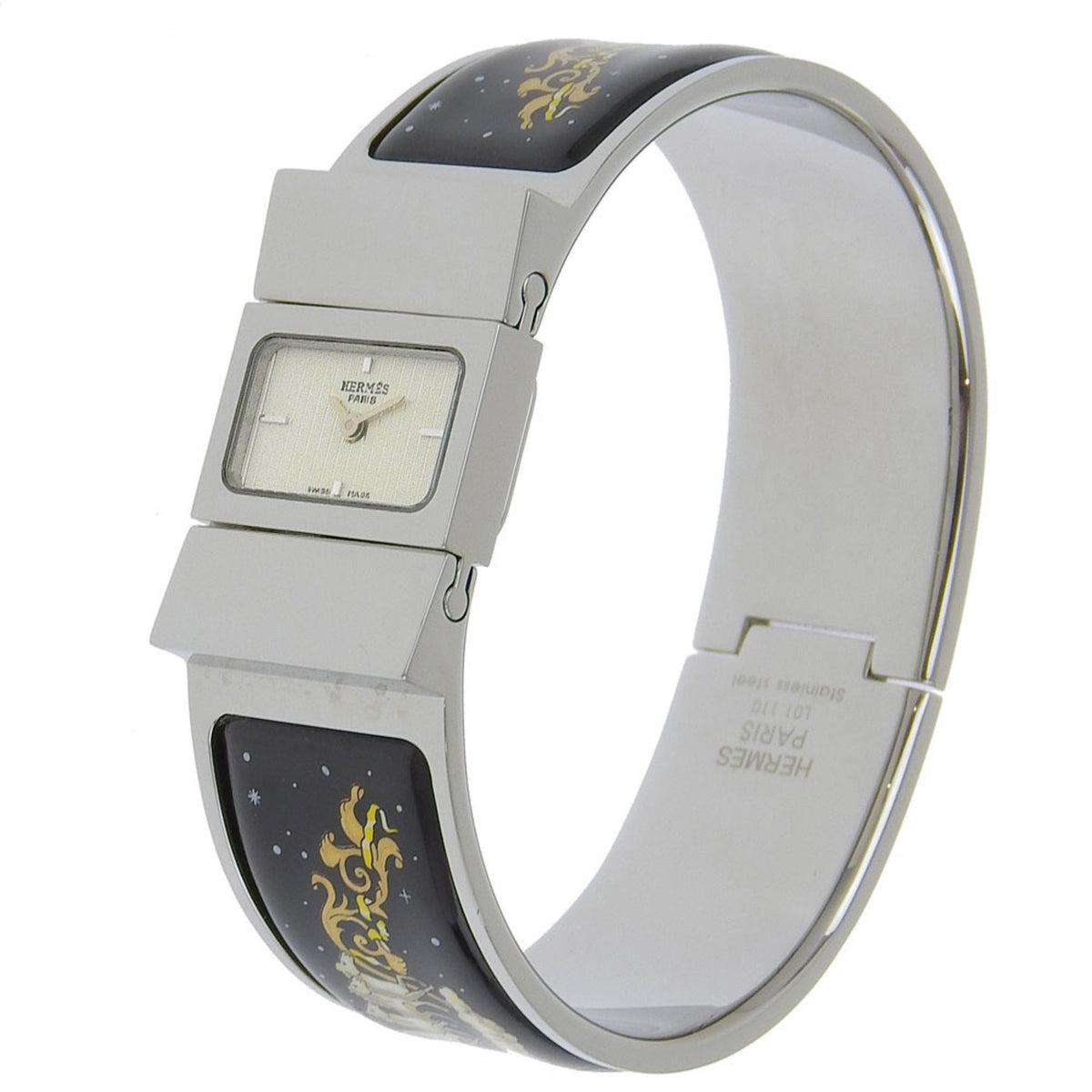 Gebrauchte Hermes HERMES L01 210 110 Silbernes Zifferblatt SS Quarz Batterie 19,5 mm Damenuhr Kutschenmotiv