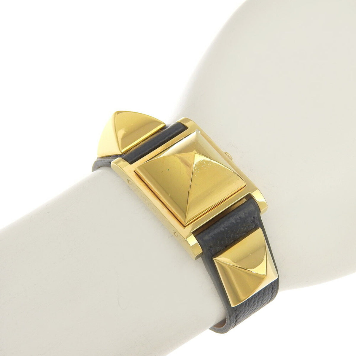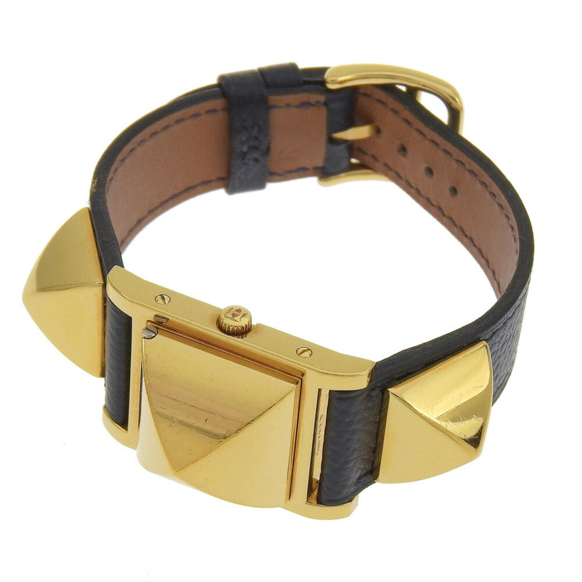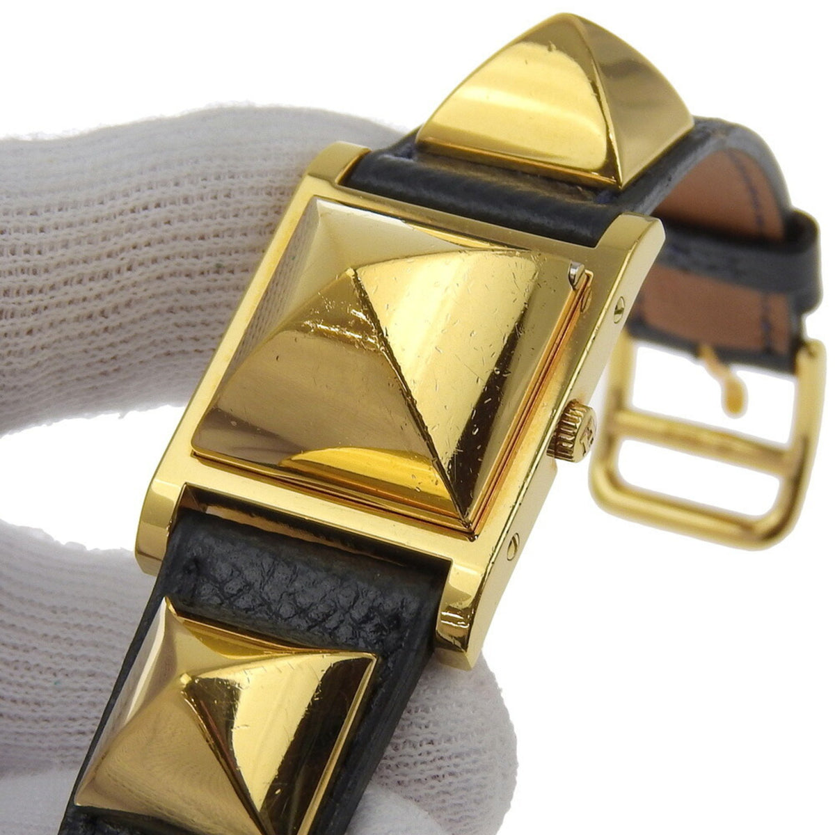 Gebrauchte Hermes HERMES Medor ?X gravierte weiße Zifferblatt Quarzuhr Batterie 23mm Damen