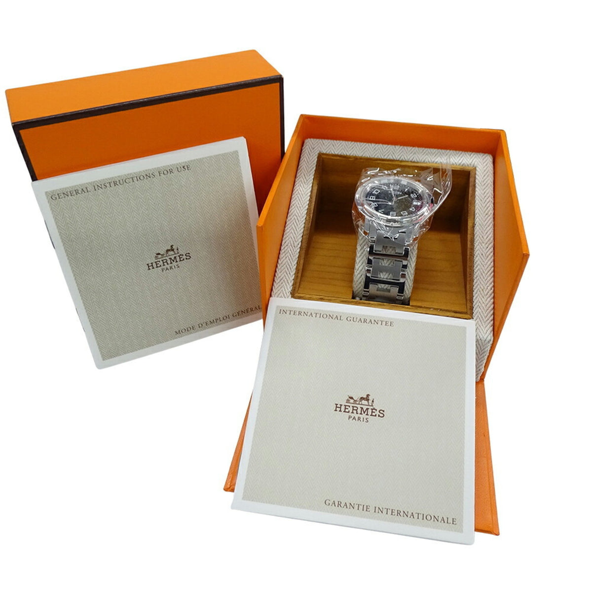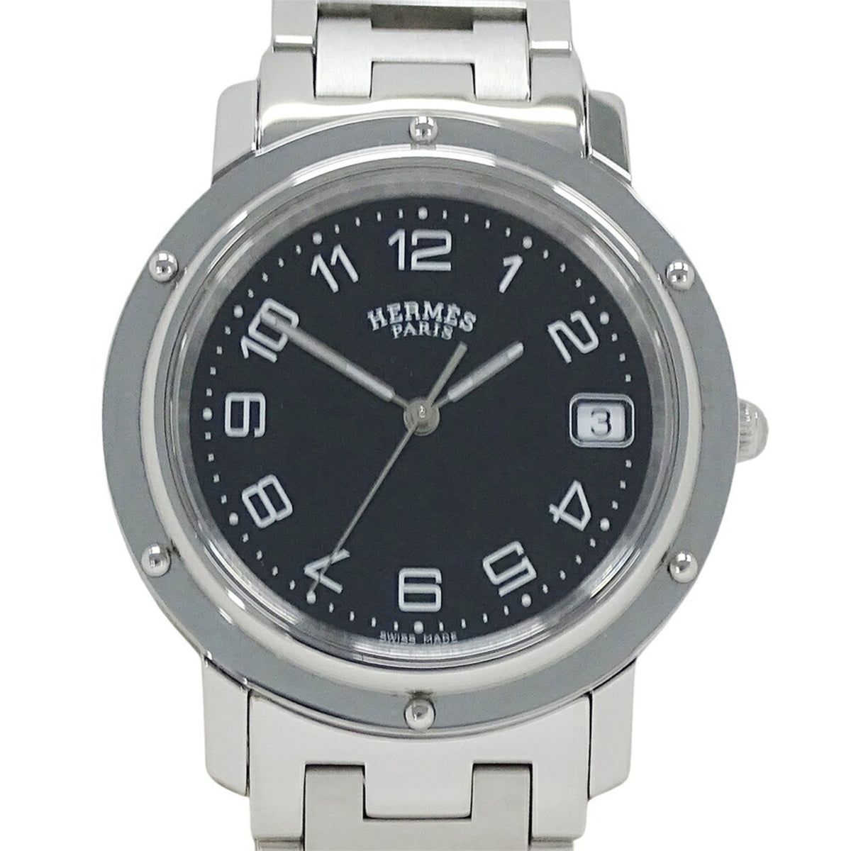 Gebrauchte Hermes HERMES Uhr Herren Clipper Date Quarz Edelstahl SS CL6.710 Silber Schwarz Poliert