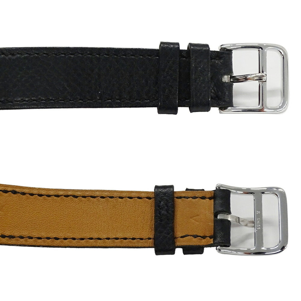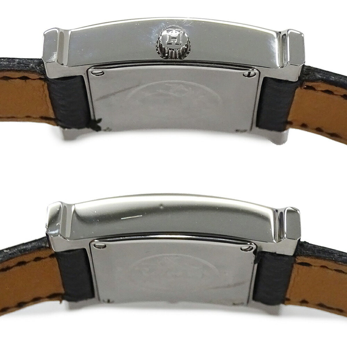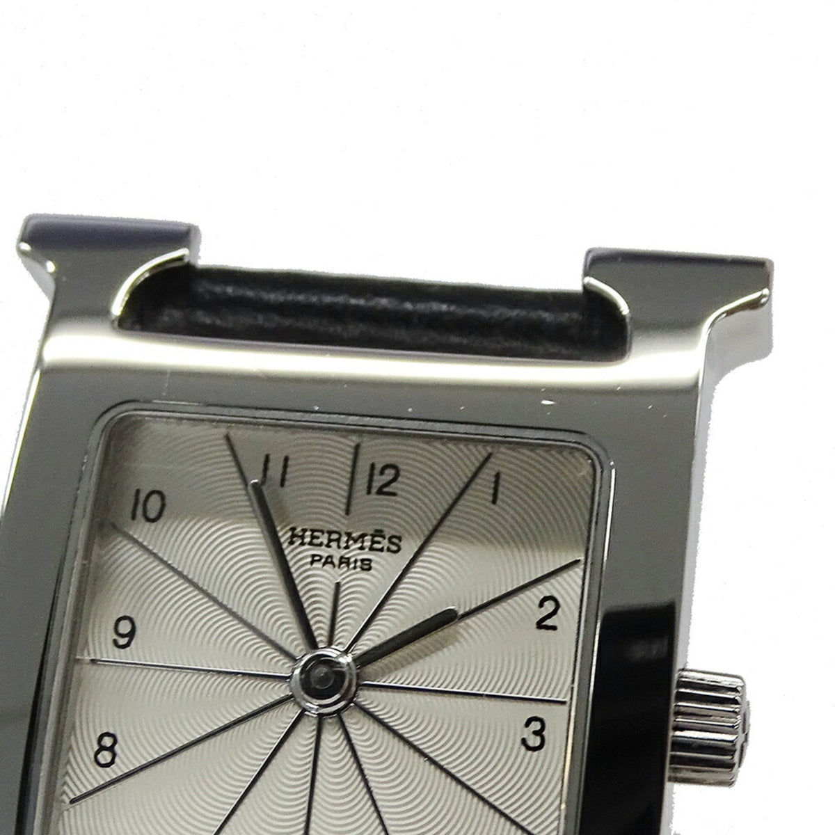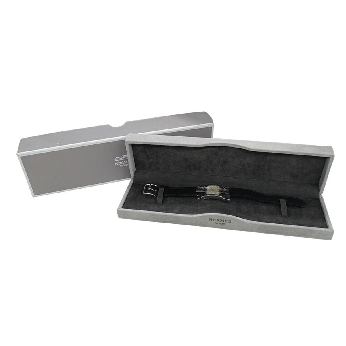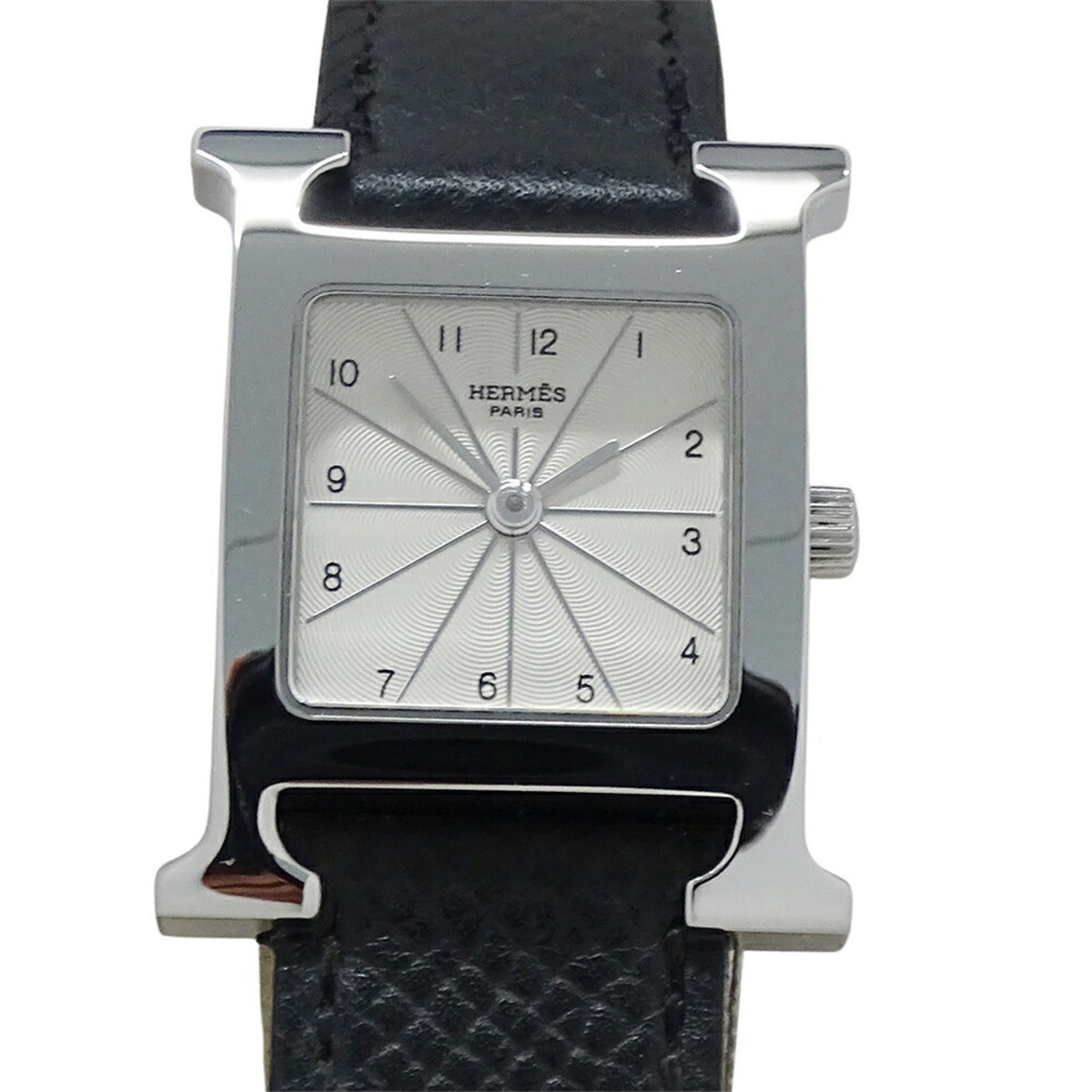 Gebrauchte Hermes HERMES Armbanduhr Damen H Uhr Quarz Edelstahl SS Leder HH1.210 Silber Schwarz ?B Poliert
