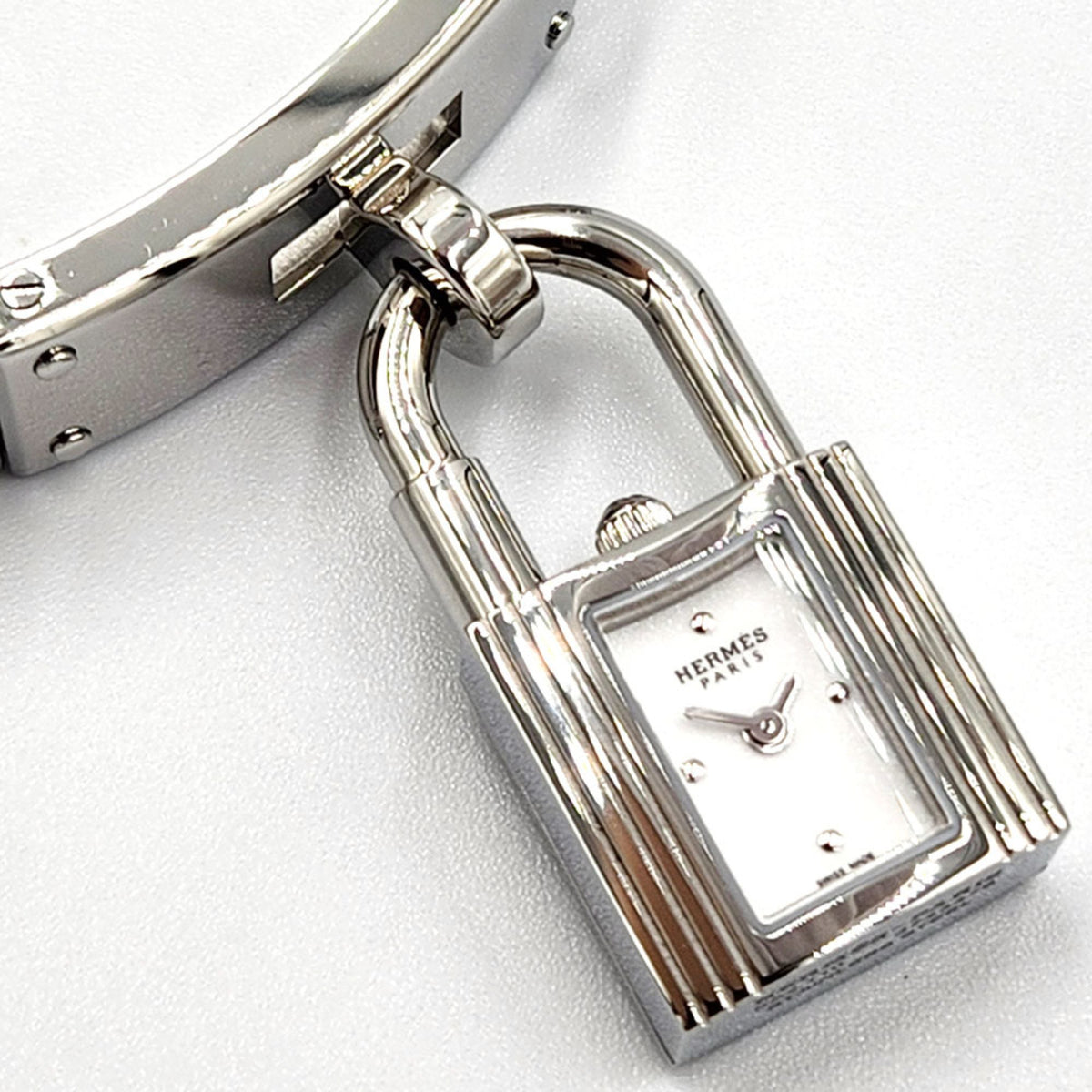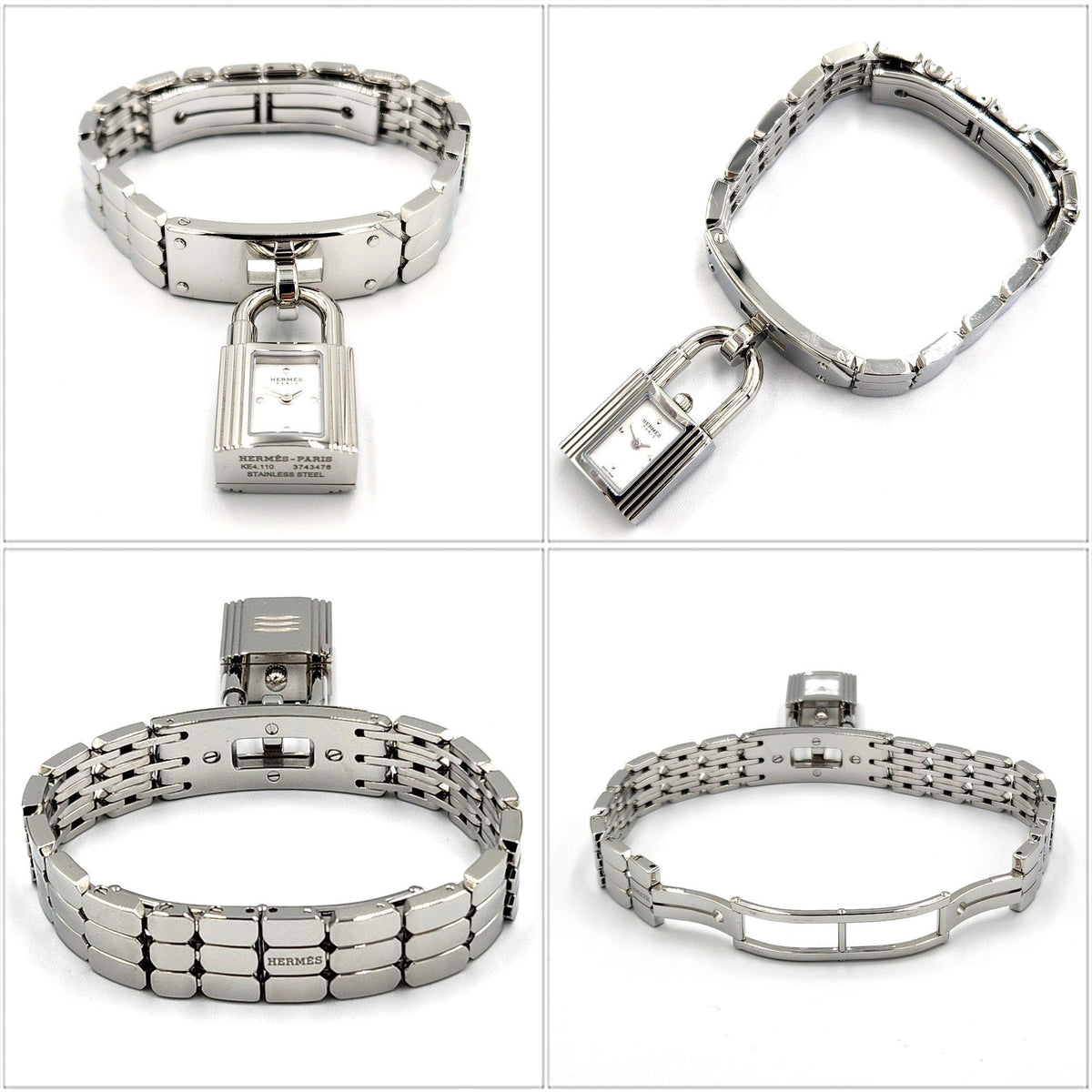 Gebrauchte Hermes Kelly Uhr KE4.110 Weißes Zifferblatt Edelstahl S Damen Armbanduhr Anhänger Quarz Silber