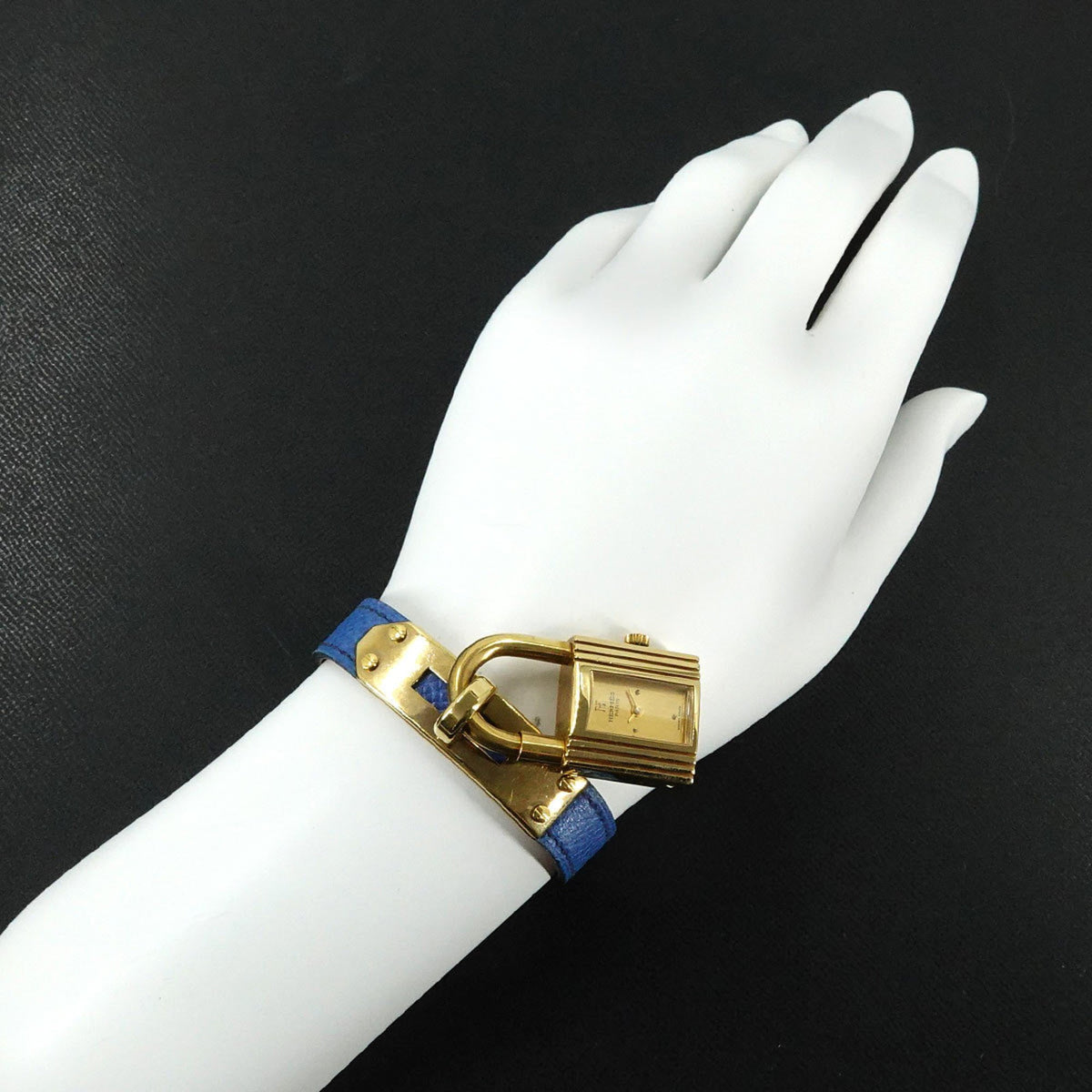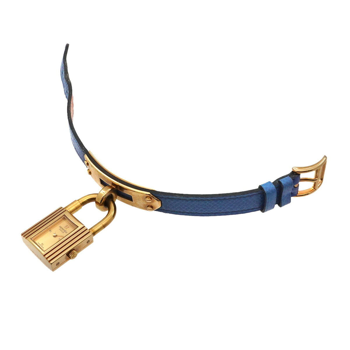 Gebrauchte Hermes Kelly Uhr Damen Gold Blau Quarz Vorhängeschloss