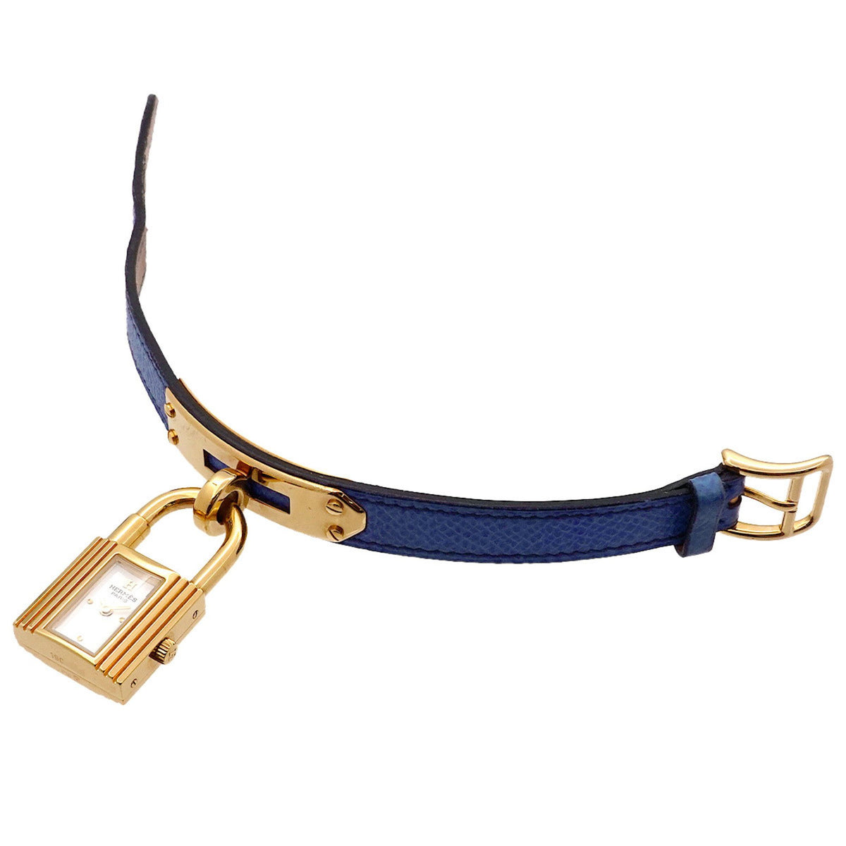 Gebrauchte Hermes Kelly Uhr Damen Weiß Blau Quarz Vorhängeschloss