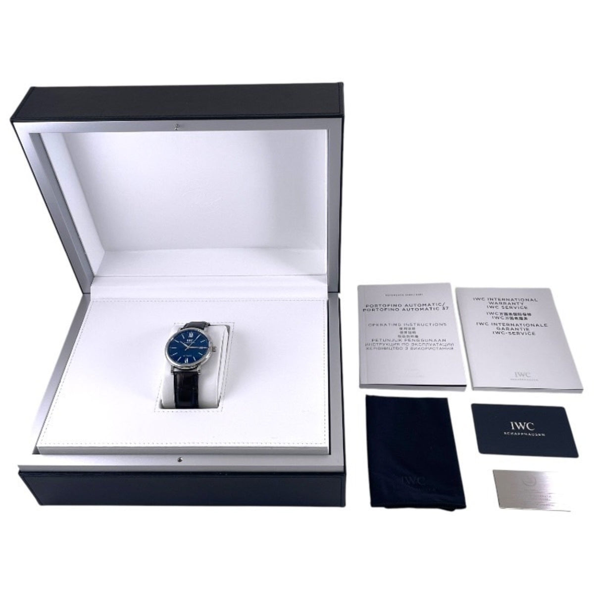 Pre-Owned IWC International Watch Company Portofino IW356518 Stainless Steel Leather Men's Watch, 150 Years, Limited Edition of 2000 Pieces, Blue Dial