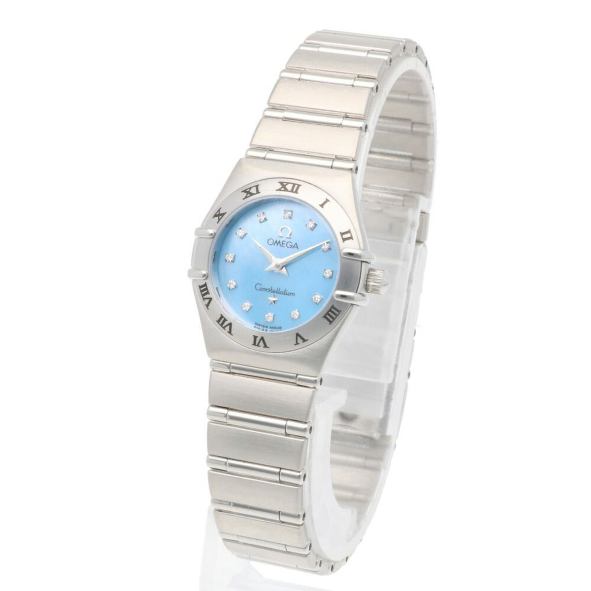 Pre-Owned Omega Constellation Mini Watch, Stainless Steel, 15628500, Quartz, Women's, Blue Shell Dial, 12 Diamonds