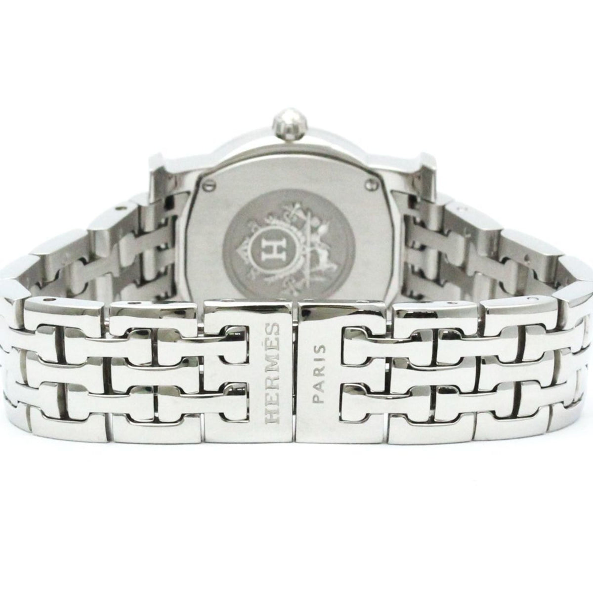 Gebrauchte polierte HERMES H-Uhr, rund, Stahl, Quarz, Damenuhr HR1.210, BF574215