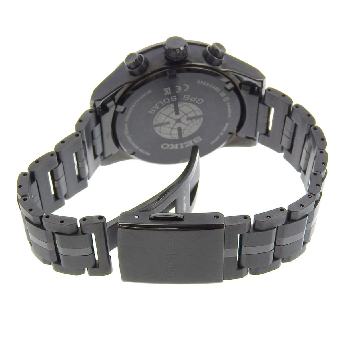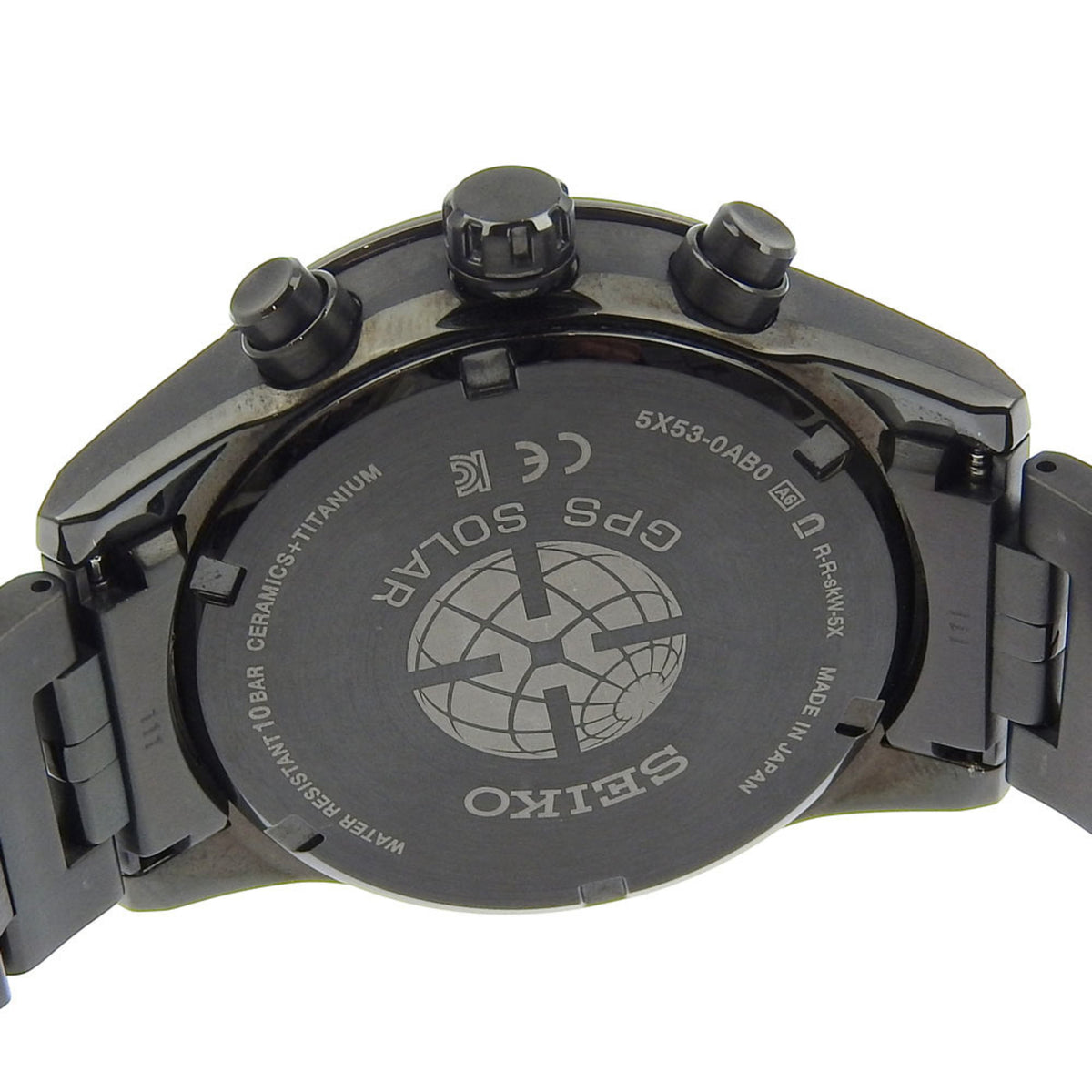 Gebrauchte Seiko Astron Day Date 5X53 0AB0 SBXC037 Schwarzes Zifferblatt Titan/Keramik GPS Solar 43mm Armbanduhr