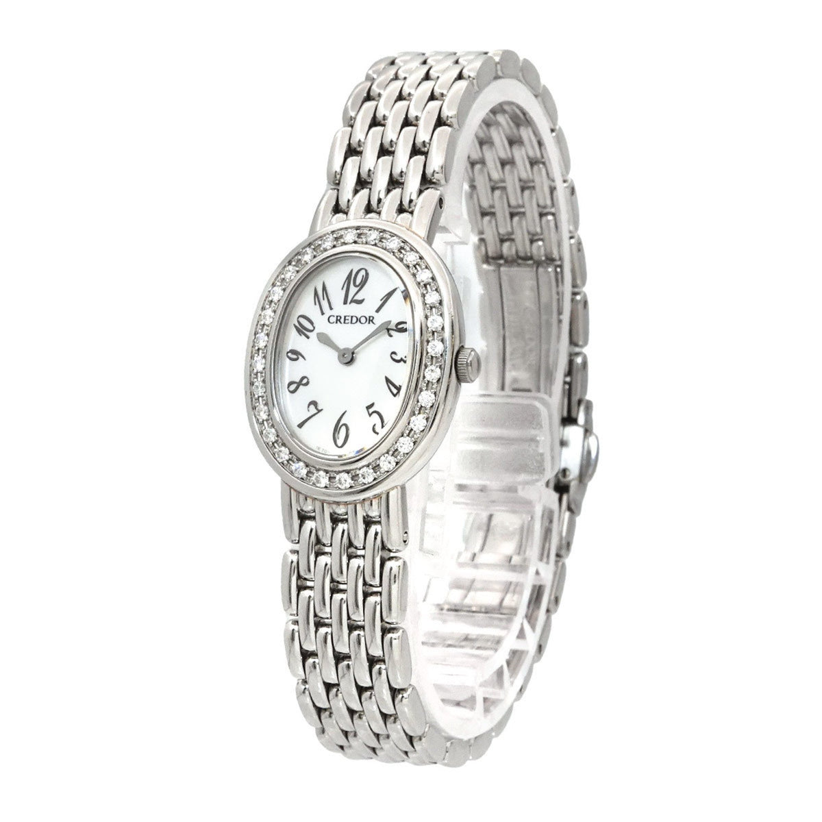 Pre-Owned Seiko Credor Signo GSTE917 1E70 0AB0 Women's Diamond Bezel White Shell Quartz Watch