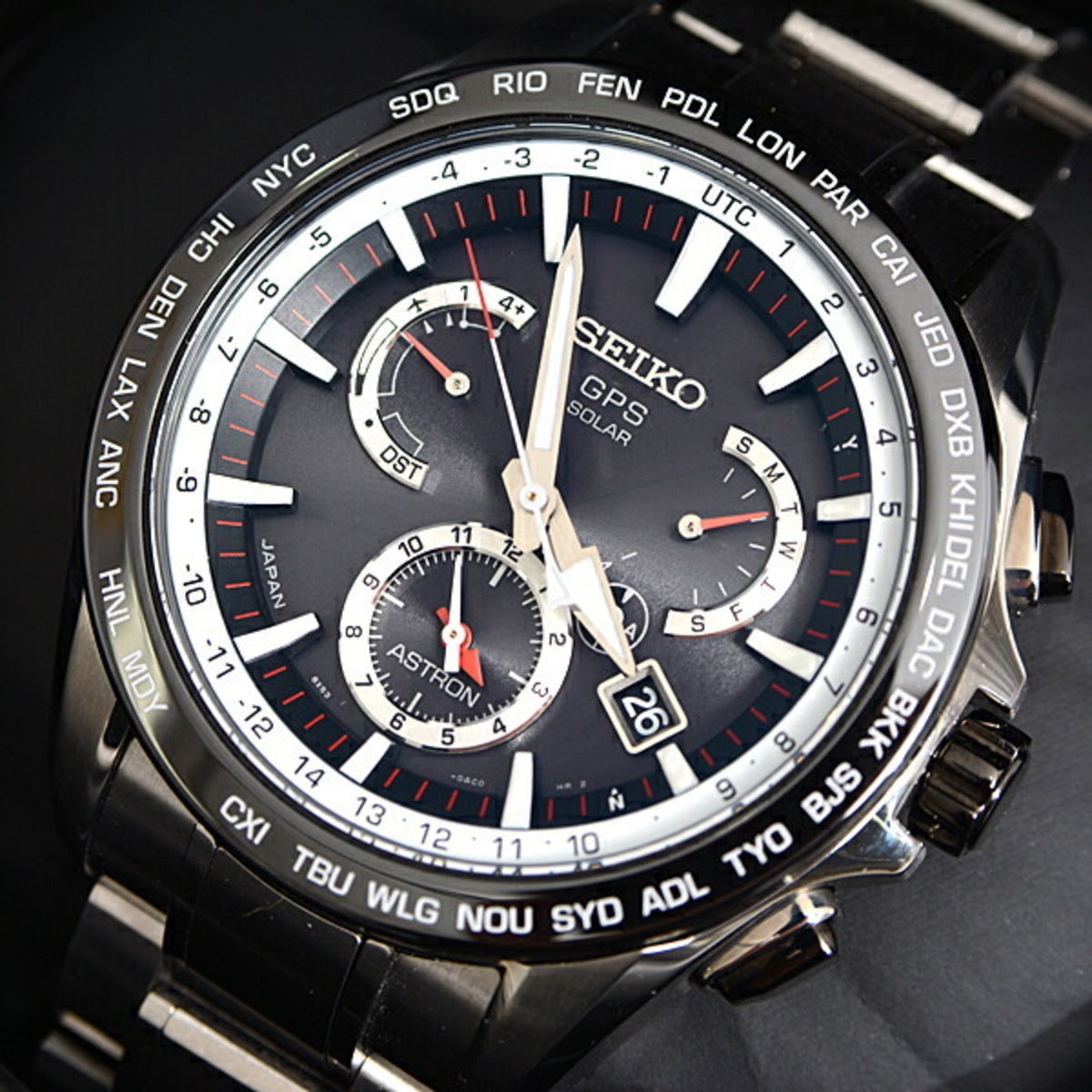 Gebrauchte Seiko Herrenuhr Astron Dual Time Solarbetrieben GPS Schwarzes Zifferblatt Edelstahl Keramik SEIKO SBXB051 8X53-0AD0-2