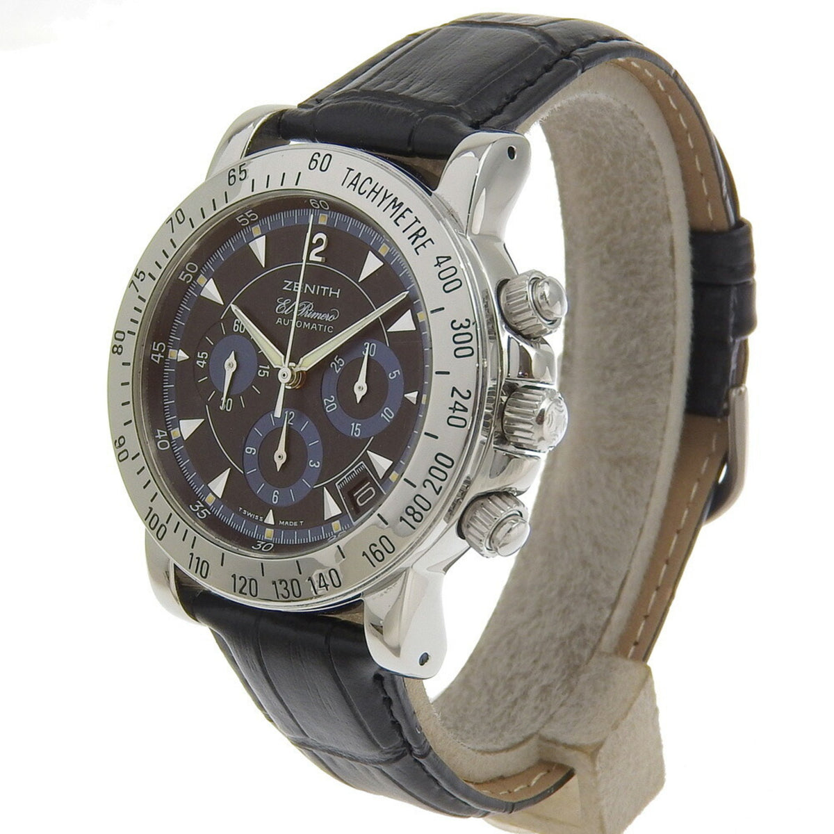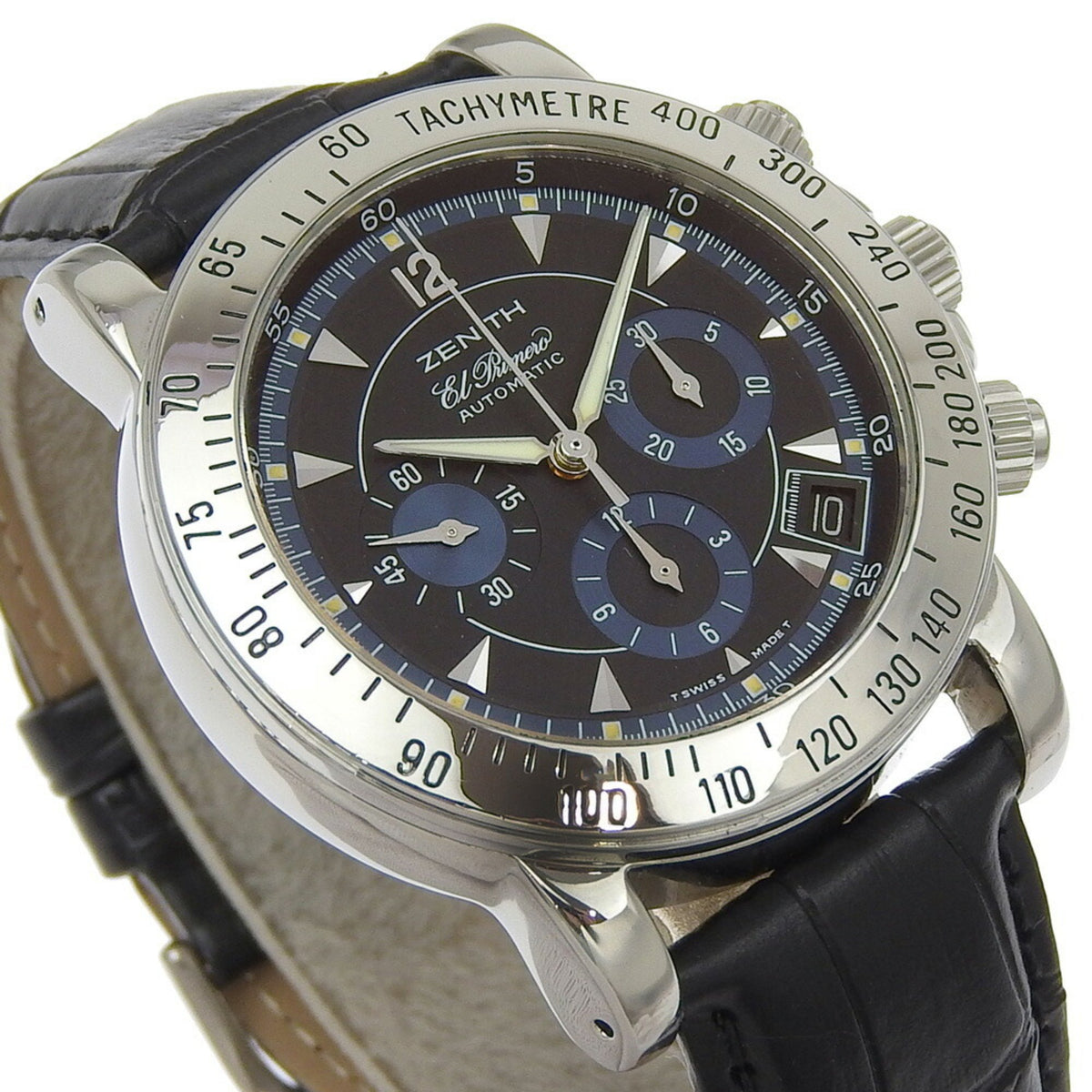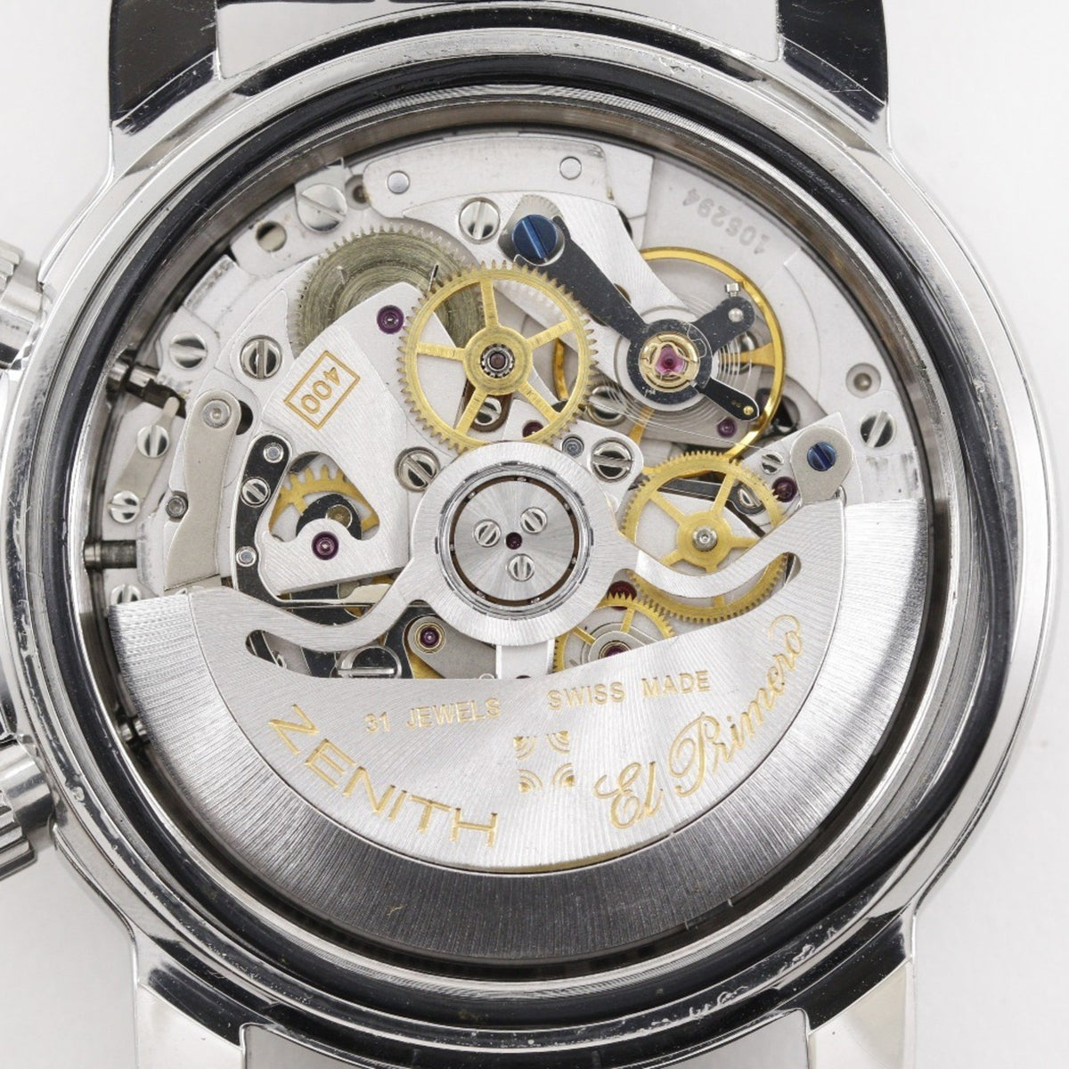 Gebrauchte Zenith Rainbow Uhr El Primero Date cal.400 02.0461.400 Edelstahl x geprägtes Leder Automatik Schwarzes Zifferblatt Herren