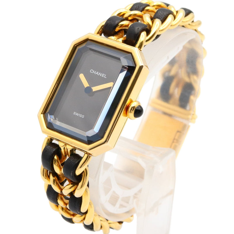 Pre-Owned CHANEL Premiere S Watch, GP (Gold Plated), Leather, Women's, Black, H0001