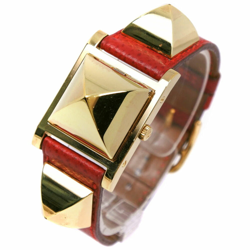 Gebrauchte Hermes Medor Uhr vergoldet x Leder 1995 Rot/Gold ?Y Quarz weißes Zifferblatt Damen I213023037