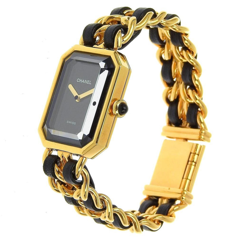 Gebrauchte Chanel CHANEL Premiere S Uhr H0001 vergoldet x Leder Quarz Analoganzeige schwarzes Zifferblatt Damen