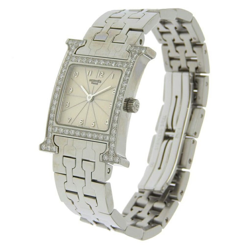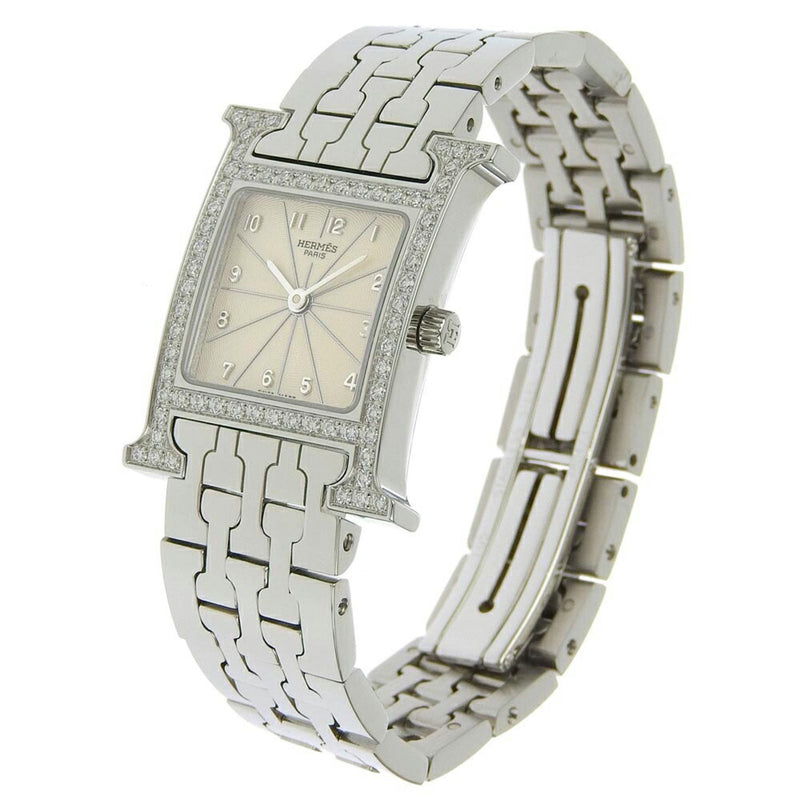 Gebrauchte Hermes HERMES H Uhr Diamantlünette HH1.230 Edelstahl x Quarz Analoganzeige Elfenbein Zifferblatt Heure für Damen