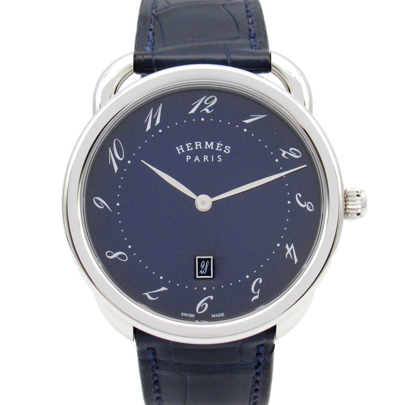 Gebrauchte Hermes HERMES Arceau Armbanduhr Edelstahl Leder Herren Blau AR7Q.810
