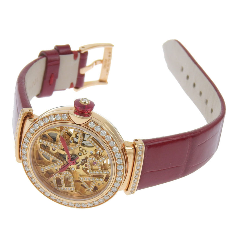 Gebrauchte BVLGARI Lucea 102833 LUP33G Skelett Zifferblatt Lünette/Zifferblatt Diamant K18PG/Leder
