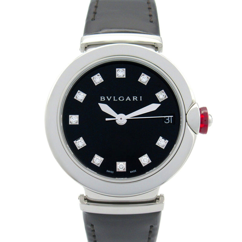 Gebrauchte BVLGARI Lucea Uhr Edelstahl Lederarmband Damen Schwarz 103503